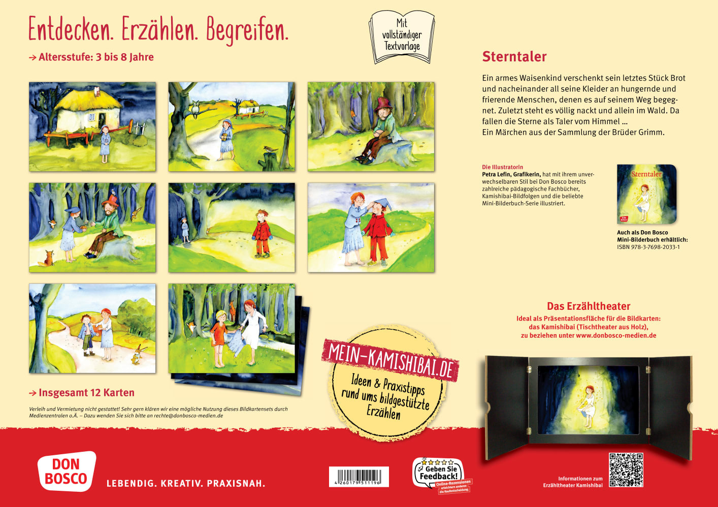 Mit dem Kamishibai Bildkartenset Sterntaler erwecken Sie das Märchen aus der Sammlung der Gebrüder Grimm zum Leben. Zugleich vermitteln Sie den Kindern sozial-emotionale Kompetenzen, animieren Sie zum Sprechen und verbessern dabei ihr Sprachgefühl!