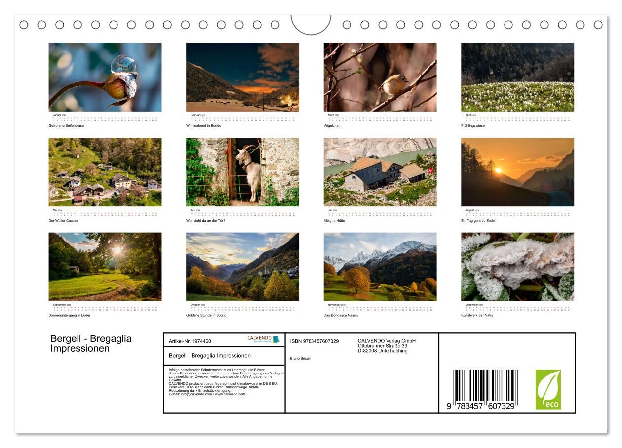 Bergell - Bregaglia Impressionen (Wandkalender 2026 DIN A4 quer), CALVENDO Monatskalender