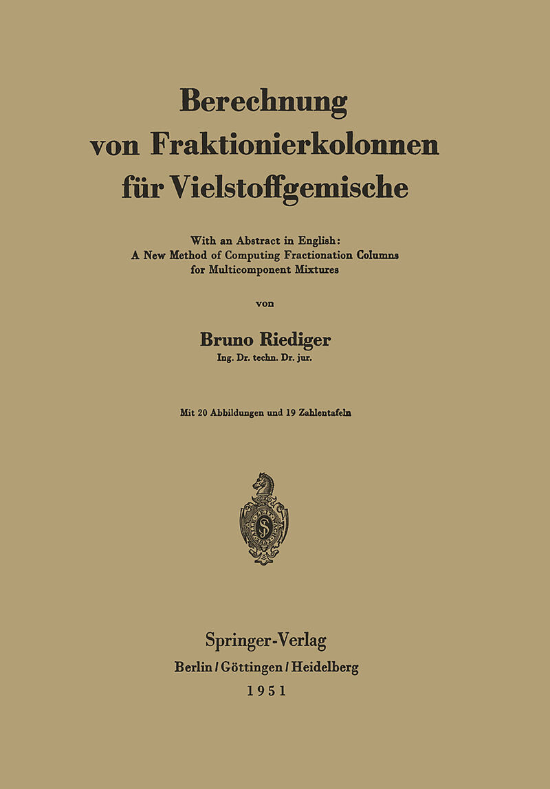 In der vorliegenden Schrift wird ein Berechnungsverfahren fUr Vielstoffgemische vorgeschlagen, das fUr verschiedene Aufgaben der Destillationstechnik anwendbar er scheint. 1m Vordergrund steht die Berechnung der Betriebsverhiiltnisse in Fraktio nierkolonnen. E...