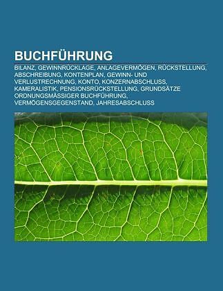 Quelle: Wikipedia. Seiten: 167. Kapitel: Bilanz, Gewinnrücklage, Anlagevermögen, Rückstellung, Abschreibung, Kontenplan, Gewinn- und Verlustrechnung, Konto, Konzernabschluss, Kameralistik, Pensionsrückstellung, Grundsätze ordnungsmäßiger Buchführung, Vermögensgegenstand, Jahresabschluss, Stille Reserven, Bankkonto, Buchhalter, Bilanzpolitik, Fondsrechnung, Umsatzsteuer-Identifikationsnummer, Bilanzstichtag, Vorsichtsprinzip, Saldo, Pauschalwertberichtigung, Rabatt, Inventur, Geschäftsjahr, Fair Value, Investitionsabzugsbetrag, Mehr- und Weniger-Rechnung, Kapitalflussrechnung, Bilanztheorie, Vernünftige kaufmännische Beurteilung, Geringwertiges Wirtschaftsgut, Gewinnthesaurierung, Kreditorenbuchhaltung, Rechnungsabgrenzung, Debitor, Jahresrechnung der Bank, Doppik, Registrierkasse, Bilanzkontinuität, Bilanzwahrheit, Bilanzklarheit, Inventar, Einzelwertberichtigung, Grundsätze zum Datenzugriff und zur Prüfbarkeit digitaler Unterlagen, Anhang, Abschreibung auf Umlaufvermögen, Parallele Buchführung, Realisationsprinzip, Teilwertabschreibung, Imparitätsprinzip, Niederstwertprinzip, Einnahmenüberschussrechnung, Jahresüberschuss, Sonderposten, Kontenrahmen, Soldbuch, Assoziiertes Unternehmen, Haushaltsbuch, Amerikanisches Journal, Corporate Trading, Bilanzierungsfähigkeit, Verlustvortrag, Maßgeblichkeitsprinzip, Debitorenbuchhaltung, Elektronische Bilanz, Kassenbon, Immaterieller Vermögensgegenstand, Betriebswirtschaftliche Auswertung, Skontration, Kapitalrücklage, Window Dressing, Portfoliowertberichtigung, Bilanzsumme, Einkünfte, Handlungsbuch, Kommunale Jahresabschlussanalyse, Rechnungskreis, GnuCash, Avis, Verfahrensdokumentation, Offene-Posten-Buchhaltung, Finanzbuchhaltung, Überkreuzkompensation, Buchungssatz, Aktivierungswahlrecht, Beleg, Bilanzfälschung, Rechenschaftsbericht, Haben, Anschaffungswertprinzip, Finanzanlage, Offener Posten, Primanota, Geschäftsvorfall, Skontro, Bestandskonto, Buchwert, Steuerbilanz, Proformarechnung, Wertaufhellungsprinzip, Fortführungsprinzip, Lagebericht, Sachanlage, Unwinding, Rohstoff, Eigenbeleg, Abstimmung, Bilanzgewinn, Lieferschein, Jahresbericht, Bilanzbuchhaltungsgesetz, Komponentenansatz, Prognosebericht, Ergänzungsbilanz, Anlagengitter, Zinsertrag, Vermögensbilanz, Zuschuss, Bonus, Betriebsvermögensvergleich, Paginierstempel, Soll, Verprobung, Rechnungsperiode, CpD-Konto, Gewinnvortrag, Wareneingang, Buchhalternase, Privatentnahme, Privateinlage, Höchstwertprinzip, Lohnbuchhaltung, Rollkarte, Kassenbuch, Integrierte Verbundrechnung, Finanzausweise, Nachtragsbericht, Gutschrift, Betriebs- und Geschäftsausstattung, Erfolgskonto, Accounting Transaction, Loss Identification Period, Länderwertberichtigung, Anlagenbuchhaltung, Kollationieren, Generalumkehr, Bilanzierungsgebot, Aufbewahrungspflicht, Bezugskosten, Schießkladde, Bereinigter Jahresüberschuss, Wareneinsatz, Bilanzierungshilfe, Einzelabschluss, Zweischneidigkeit der Bilanz, Durchlaufender Posten, Umsatzsteuerkonto, Kontierungsrichtlinie, Wertbegründung, Privatkonto, Verlustrücklage, Digitales Belegwesen, Verlustantizipation, Mahnweg, Einheitsbilanz, Entity-Methode, Zinsaufwand, Bilanzidentität, Verrechnung, Stornierung, Zahlbetrag, Sachaufwand, Luftbuchung, Warenausgang, Mittel, Guthaben, Forschungsbericht, Bilanzverlängerung, Aktivtausch, Accounting mismatch, Bilanzverkürzung, Gegenfinanzierung, FinRep, Sachkonto, Rohergebnis, Passivtausch, Rückstand, Liquidierbarkeit, Umsatzsteuerverprobung, Pagatorischer Gewinn, Radierverbot, Davon-Verm...