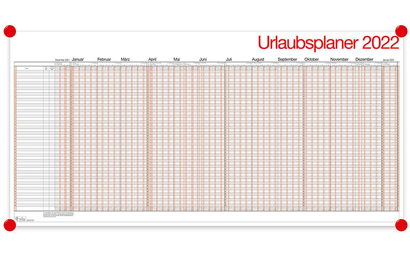 BÜHNER Ferienplaner DE 2026 UP12-CH-R-FS für 49 Mitarbeiter 99x49cm