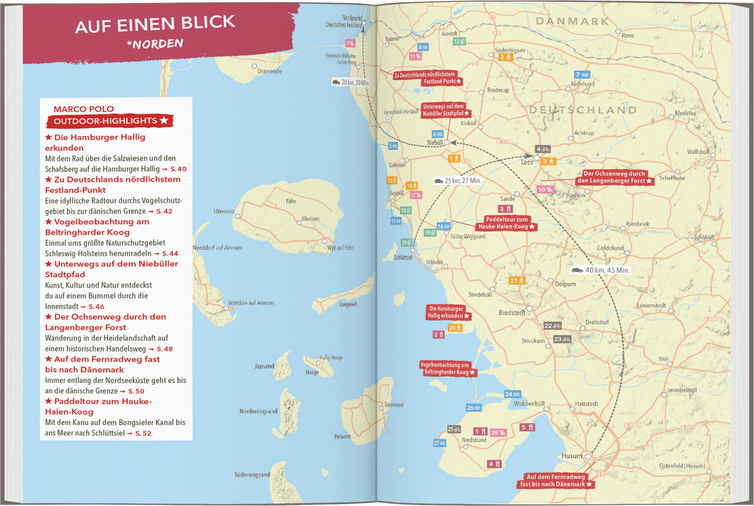 Mit dem MARCO POLO OUTDOOR GUIDE Reiseführer Nordseeküste Schleswig-Holstein und seine maritimen Traditionen erkunden Zum nördlichsten Punkt des deutschen Festlands radeln, die Salzwiesen auf Hallig Hooge erkunden, versteckte Herrenhäuser entdecken und durch ...