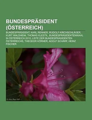 Quelle: Wikipedia. Seiten: 39. Kapitel: Bundespräsident, Karl Renner, Rudolf Kirchschläger, Kurt Waldheim, Thomas Klestil, Bundespräsidentenwahl in Österreich 2010, Liste der Bundespräsidenten Österreichs, Theodor Körner, Adolf Schärf, Heinz Fischer, Wahlergeb...