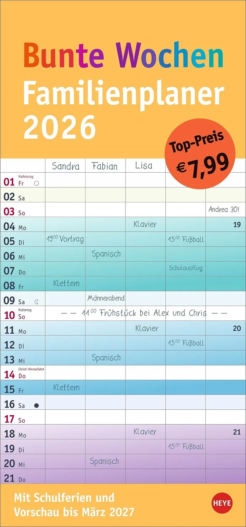 - Die praktische Organisationshilfe, um Licht im Termin-Dschungel zu schaffen: Der bunte Wochen-Familienkalender 2026 - Farbenfroh und gleichzeitig neutral: Kalender ohne platzraubende Designelemente im Format 21x45 cm, der Freiraum für das Wesentliche schafft...
