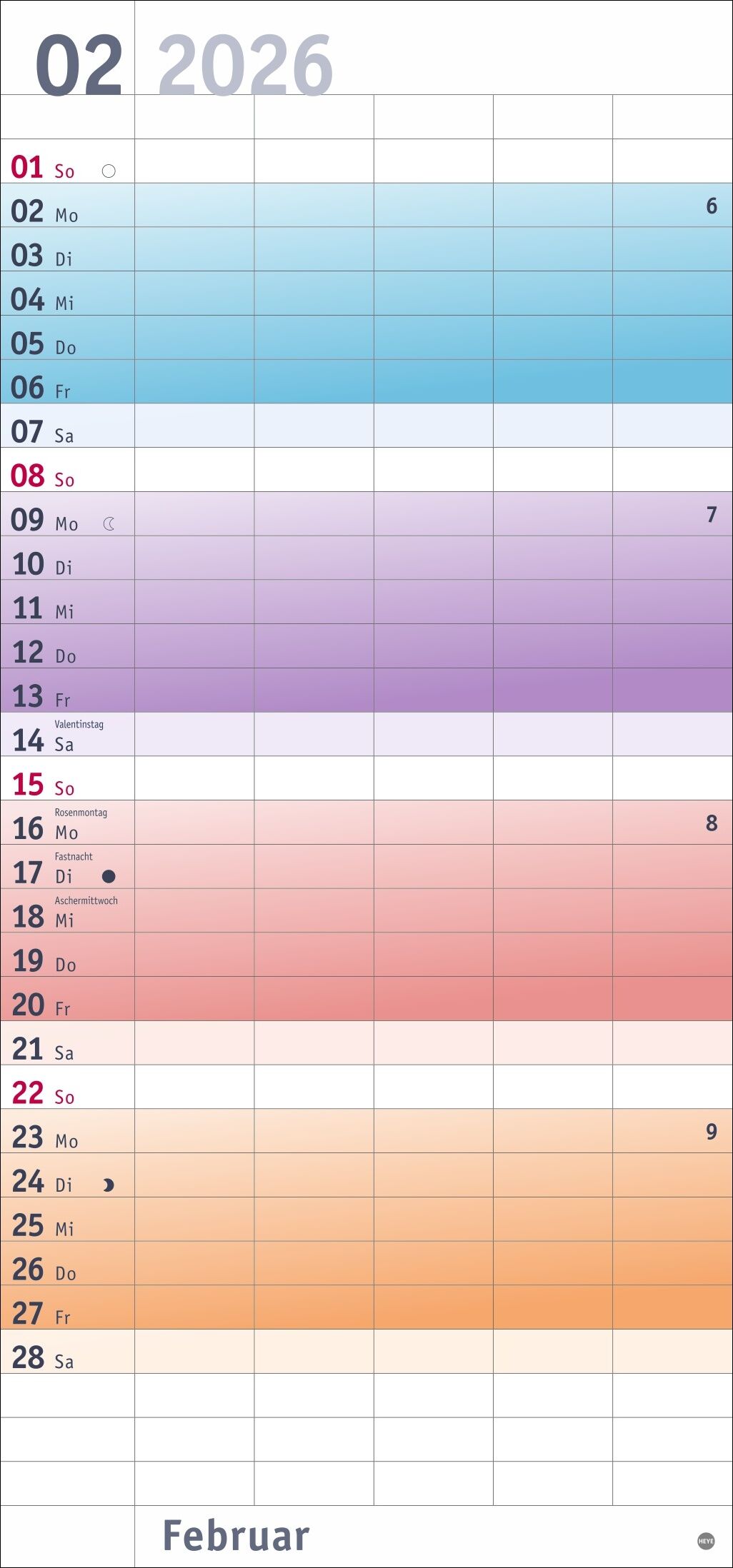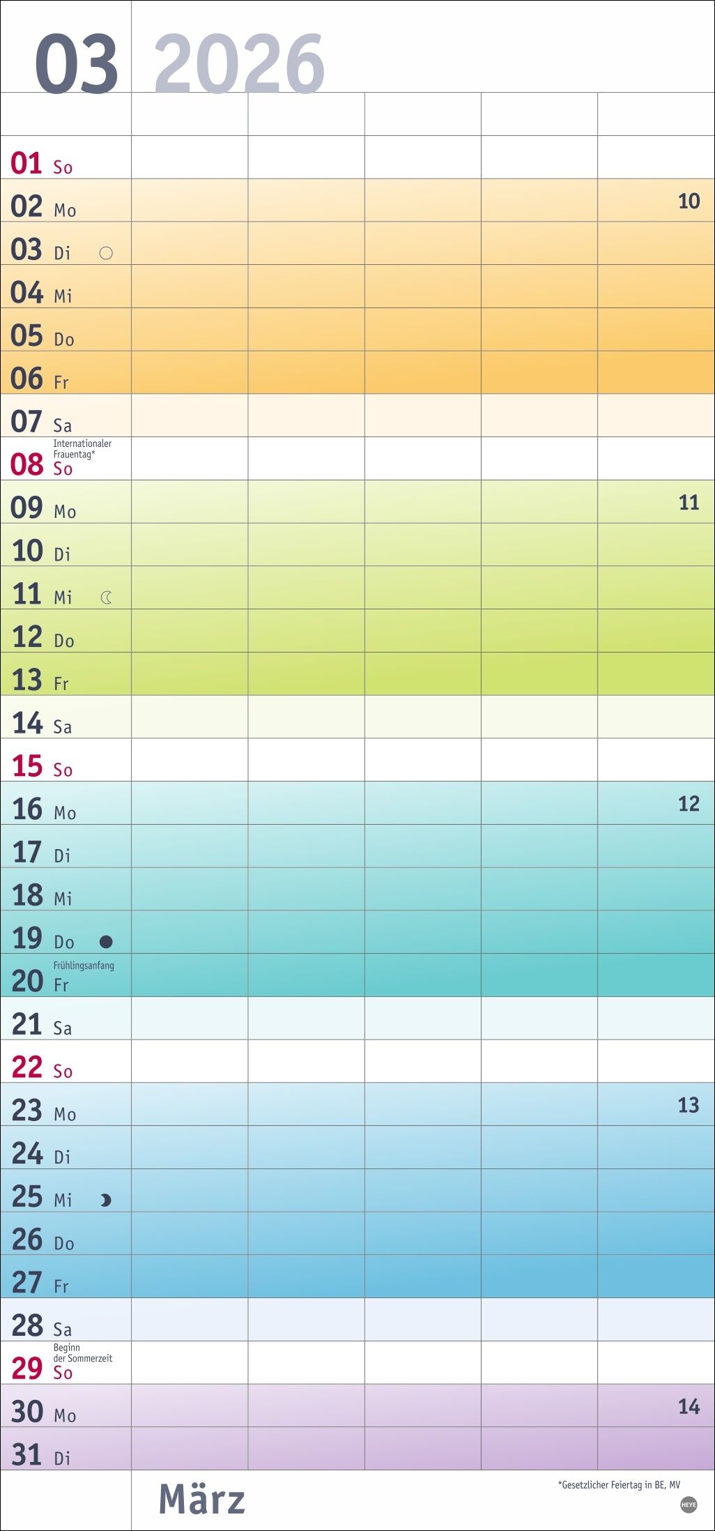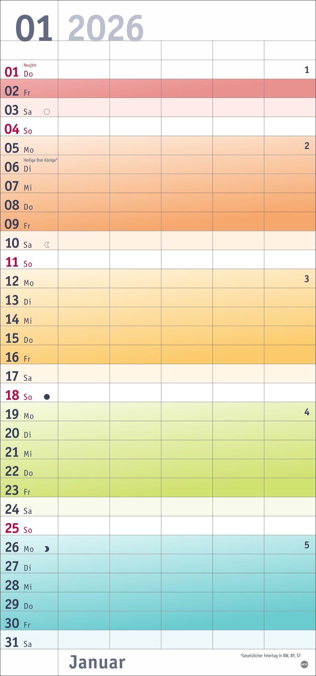 Die praktische Organisationshilfe, um Licht im Termin-Dschungel zu schaffen: Der bunte Wochen-Familienkalender 2026 - Farbenfroh und gleichzeitig neutral: Kalender ohne platzraubende Designelemente im Format 21x45 cm, der Freiraum für das Wesentliche schafft...
