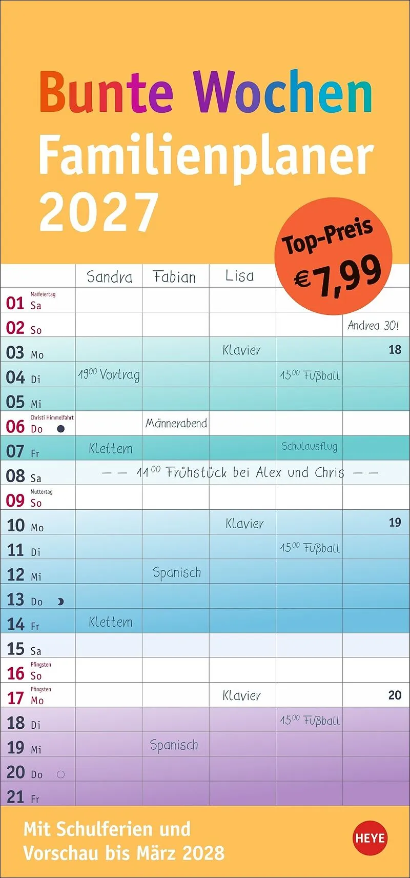 - Die praktische Organisationshilfe, um Licht im Termin-Dschungel zu schaffen: Der bunte Wochen-Familienkalender 2027 - Farbenfroh und gleichzeitig neutral: Kalender ohne platzraubende Designelemente im Format 21 x 45 cm, der Freiraum für das Wesentliche schaf...