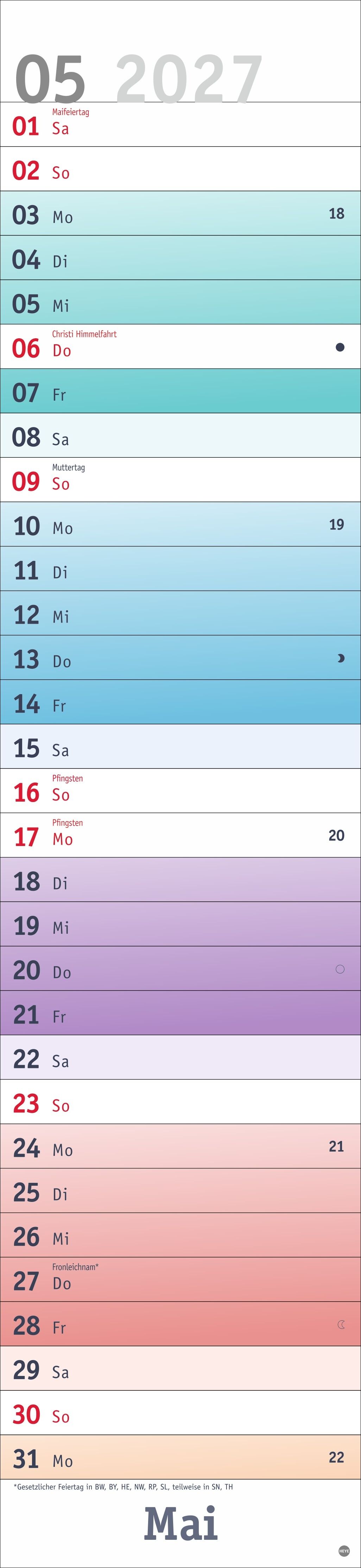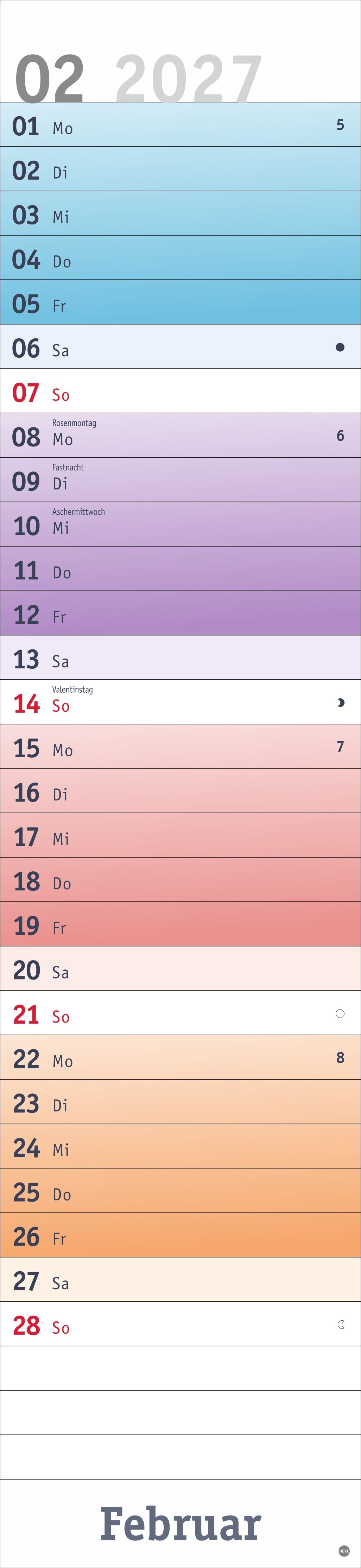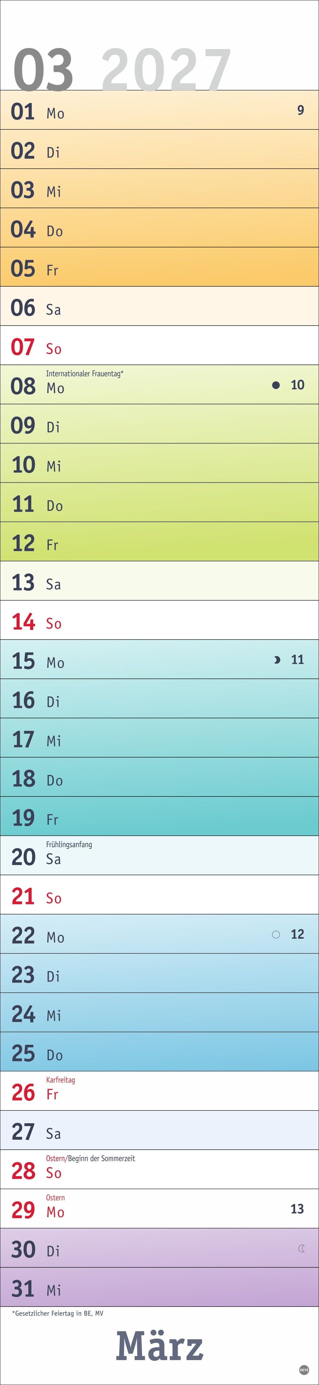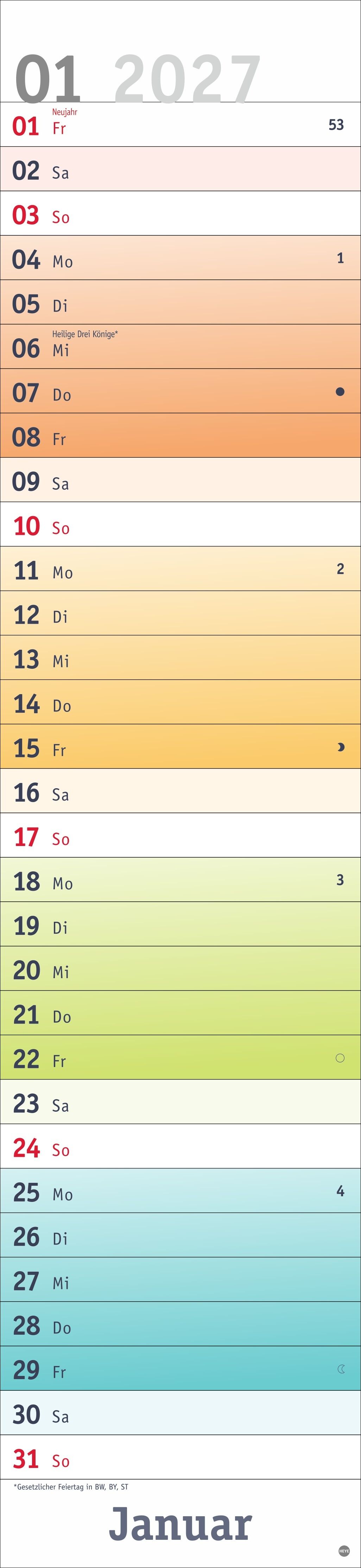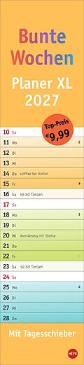 Alle Termine auf einen Blick: farbenfroher Wandkalender 2027 zum Eintragen Fröhliches Design trifft straffe Orga: Der Monatsplaner 2027 mit dem gewissen Etwas Mit Tagesschieber und allen Feiertagen: Langplaner mit Überblick im Format 16 x 69,5 cm Terminplaner ...