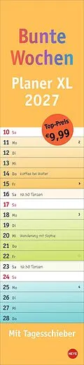 Alle Termine auf einen Blick: farbenfroher Wandkalender 2027 zum Eintragen Fröhliches Design trifft straffe Orga: Der Monatsplaner 2027 mit dem gewissen Etwas Mit Tagesschieber und allen Feiertagen: Langplaner mit Überblick im Format 16 x 69,5 cm Terminplaner ...