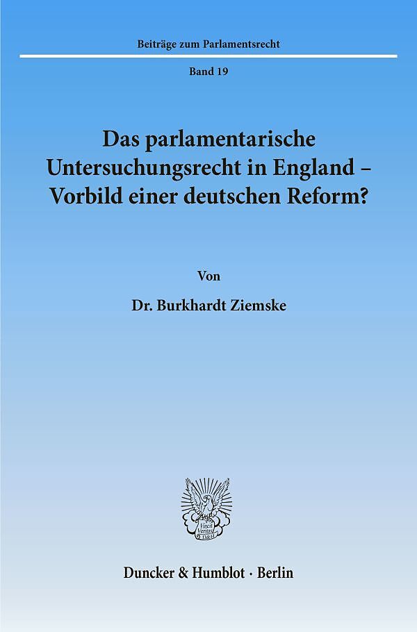 Das parlamentarische Untersuchungsrecht in England - Vorbild einer deutschen Reform?