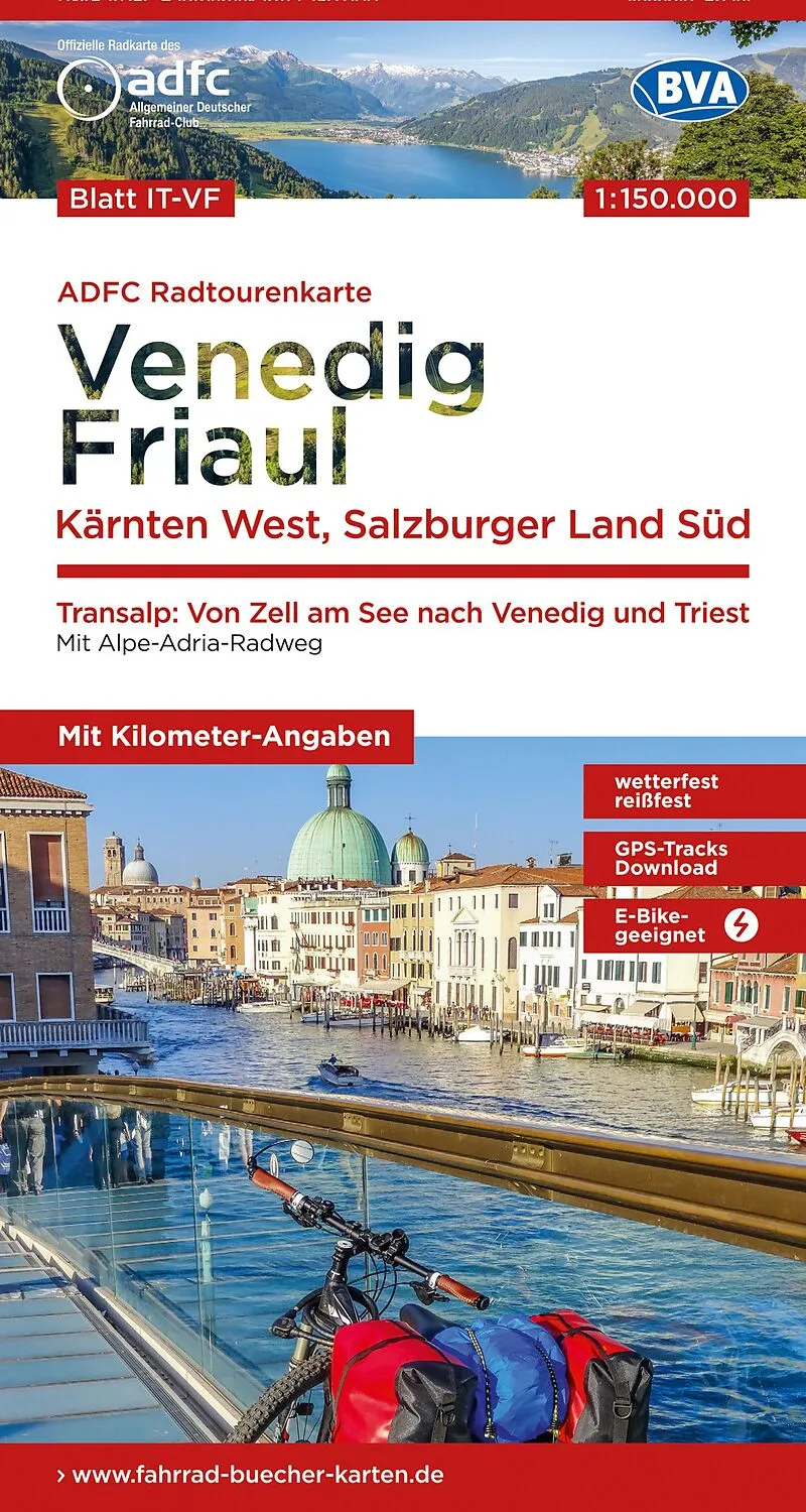 BVA ADFC Radtourenkarte Venedig, Friaul - Kärnten West, Salzburger Land Süd, 1:150.000