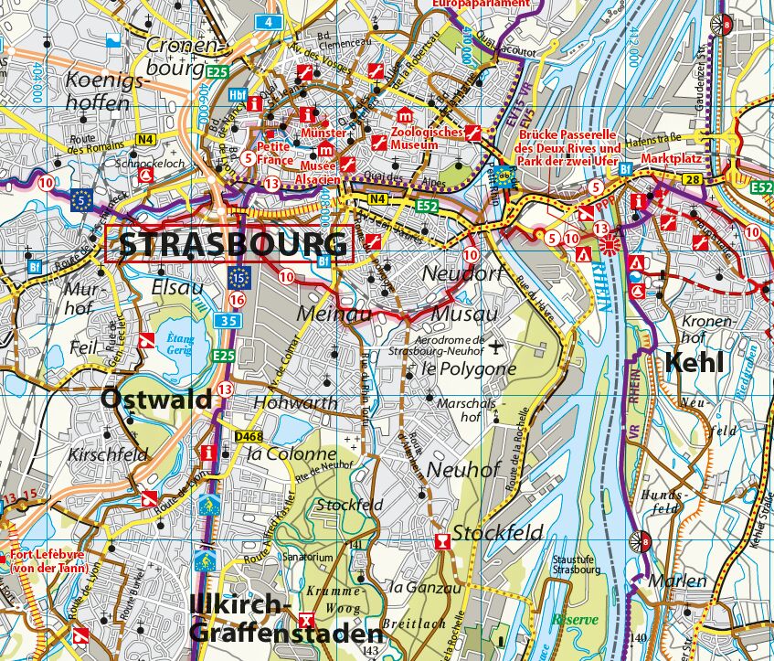 Offizielle Karte des ADFC Allgemeiner Deutscher Fahrrad-Club e.V. die ideale Karte für Planung und Durchführung von Tages- und Wochenendradtouren. Auf einem großen Gebiet von bis zu 70 x 100 Kilometern findet sich alles, was Radler brauchen. Routen, Tagestoure...