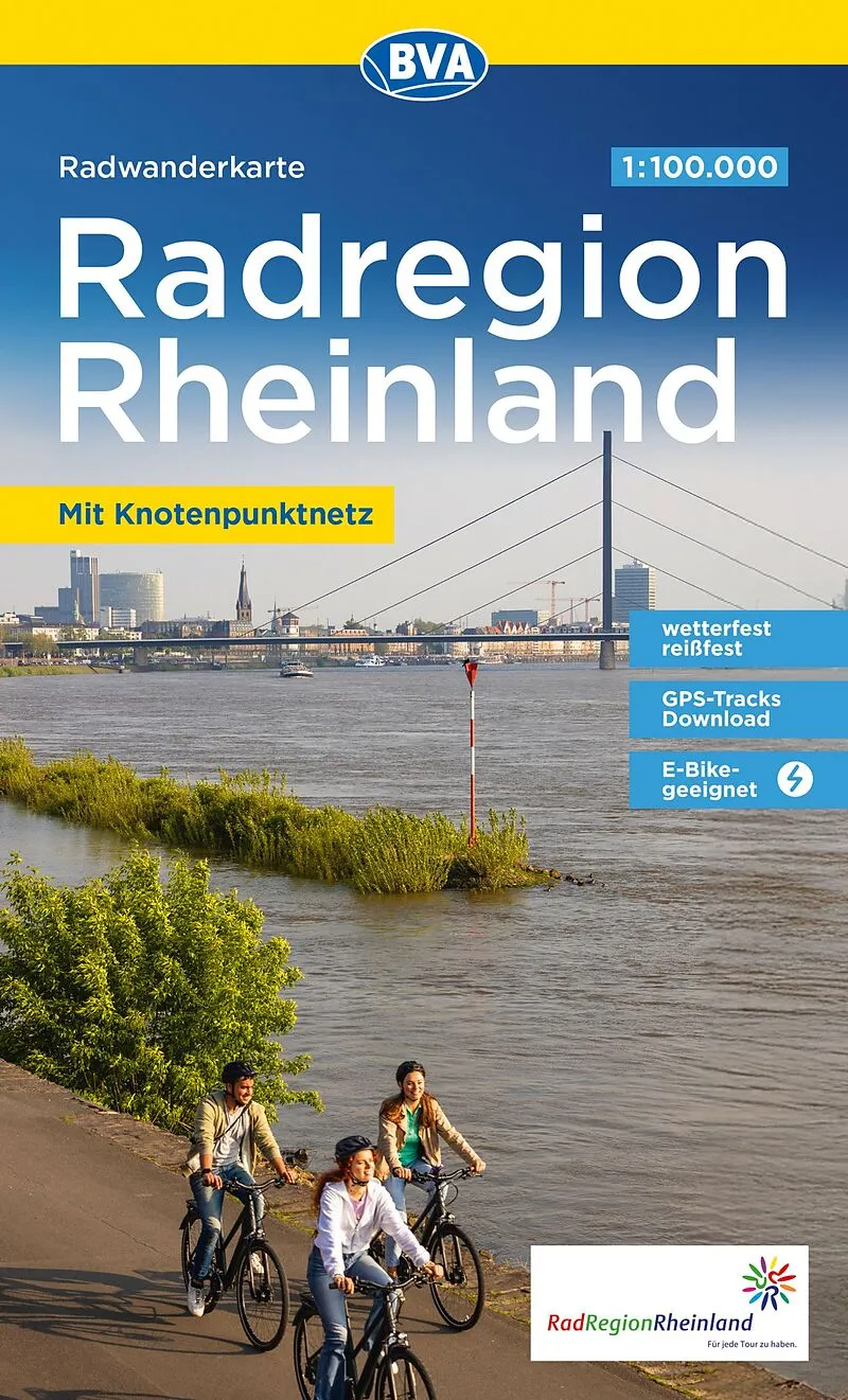 Radwanderkarte BVA Radwandern in der RadRegionRheinland Reiß- und wetterfest und mit GPS-Track Download der ausgeschilderten Routen.