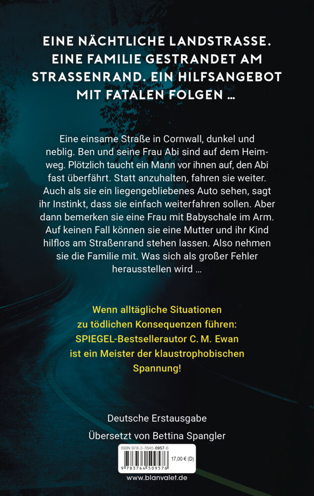 Eine nächtliche Landstraße. Eine Familie gestrandet am Straßenrand. Ein Hilfsangebot mit fatalen Folgen Ein nervenzerreißender Locked-Room-Thriller! Eine einsame Landstraße in Cornwall, dunkel und neblig. Ben und seine Frau Abi sind auf dem Heimweg. Plötzlich ...