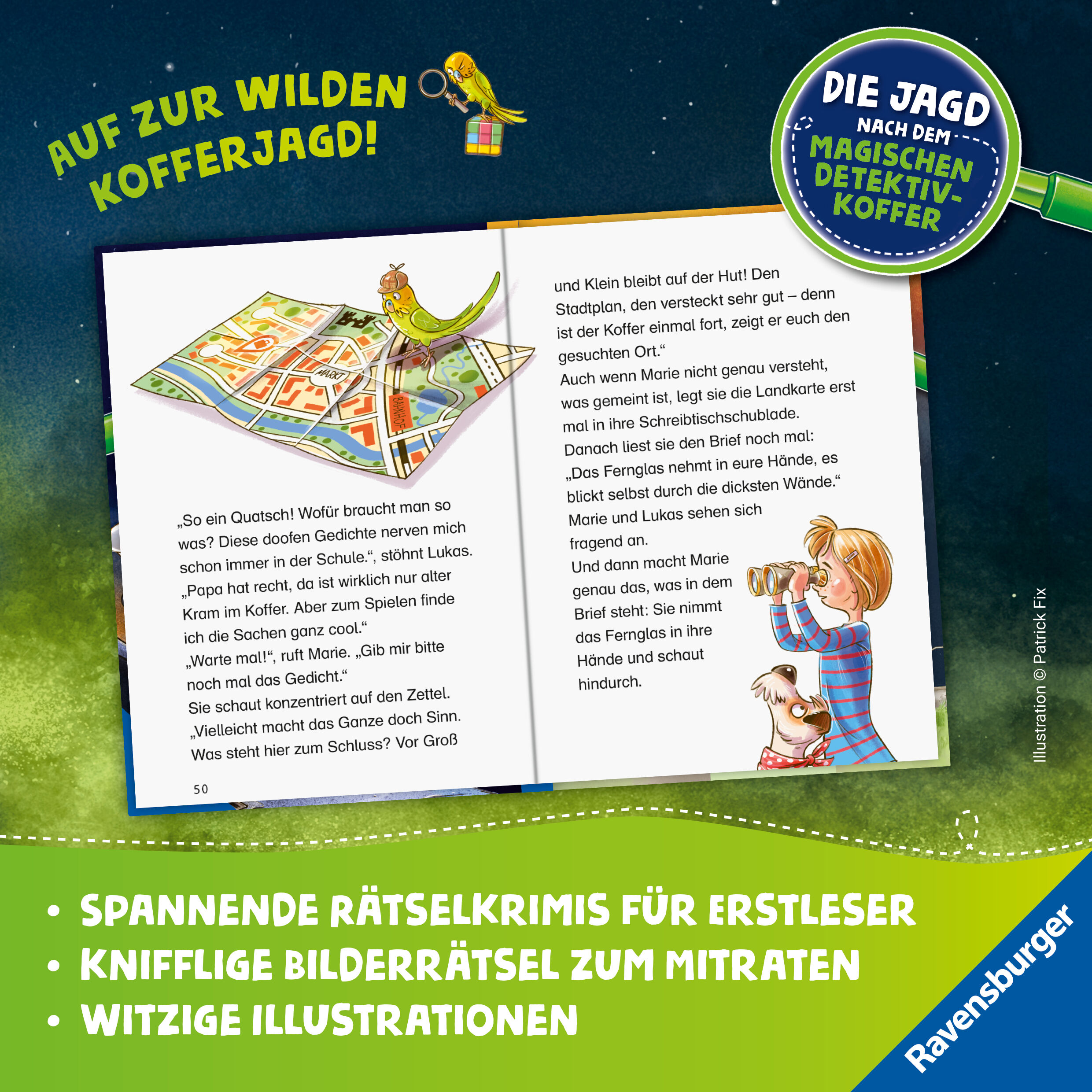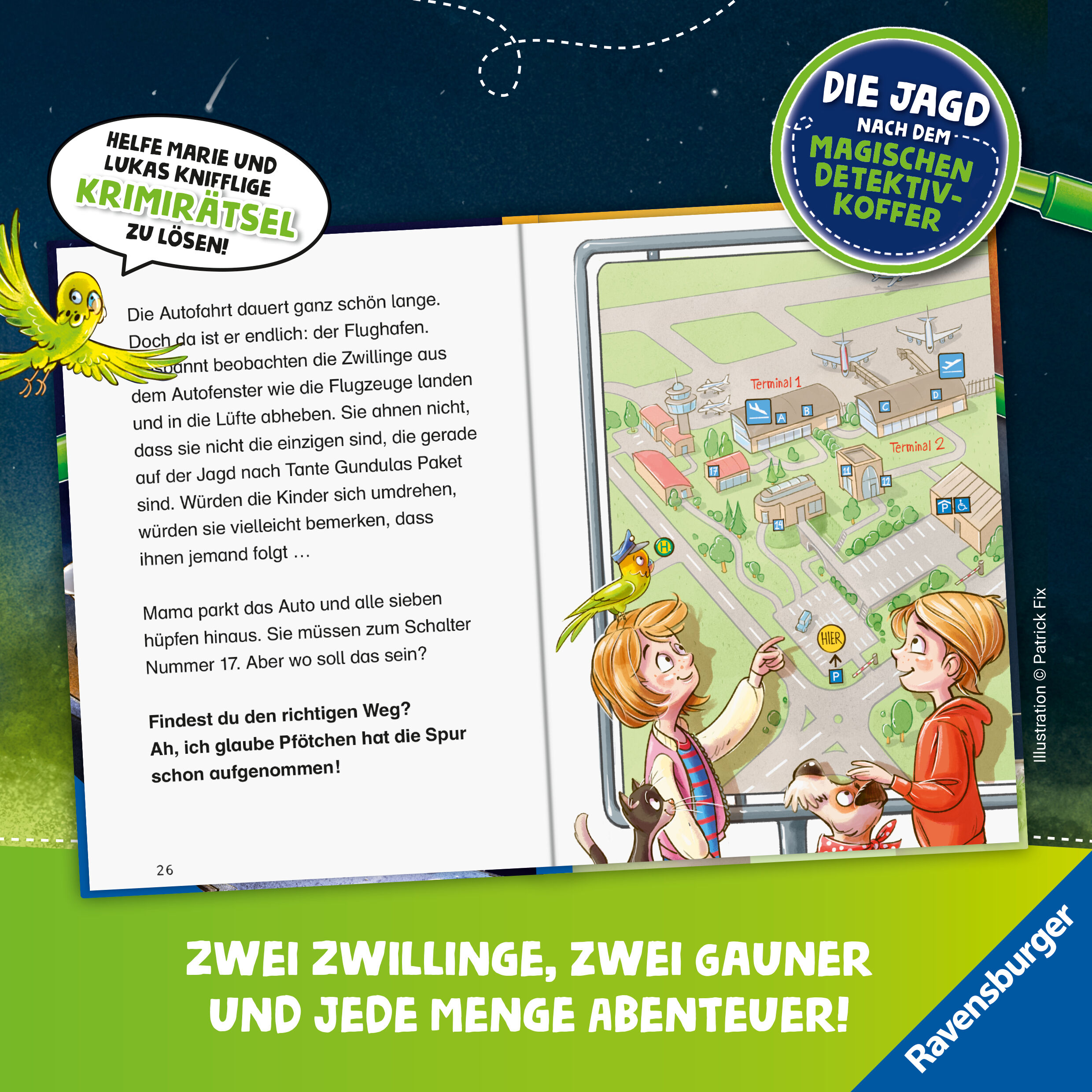 Auf zur wilden Kofferjagd! Überraschung! Zu ihrem siebten Geburtstag bekommen die Zwillinge Lukas und Marie einen geheimnisvollen Koffer geschenkt. Darin enthalten ist alles, was richtige Detektive brauchen: eine Lupe, ein Fernglas, ein Stadtplan und vieles me...