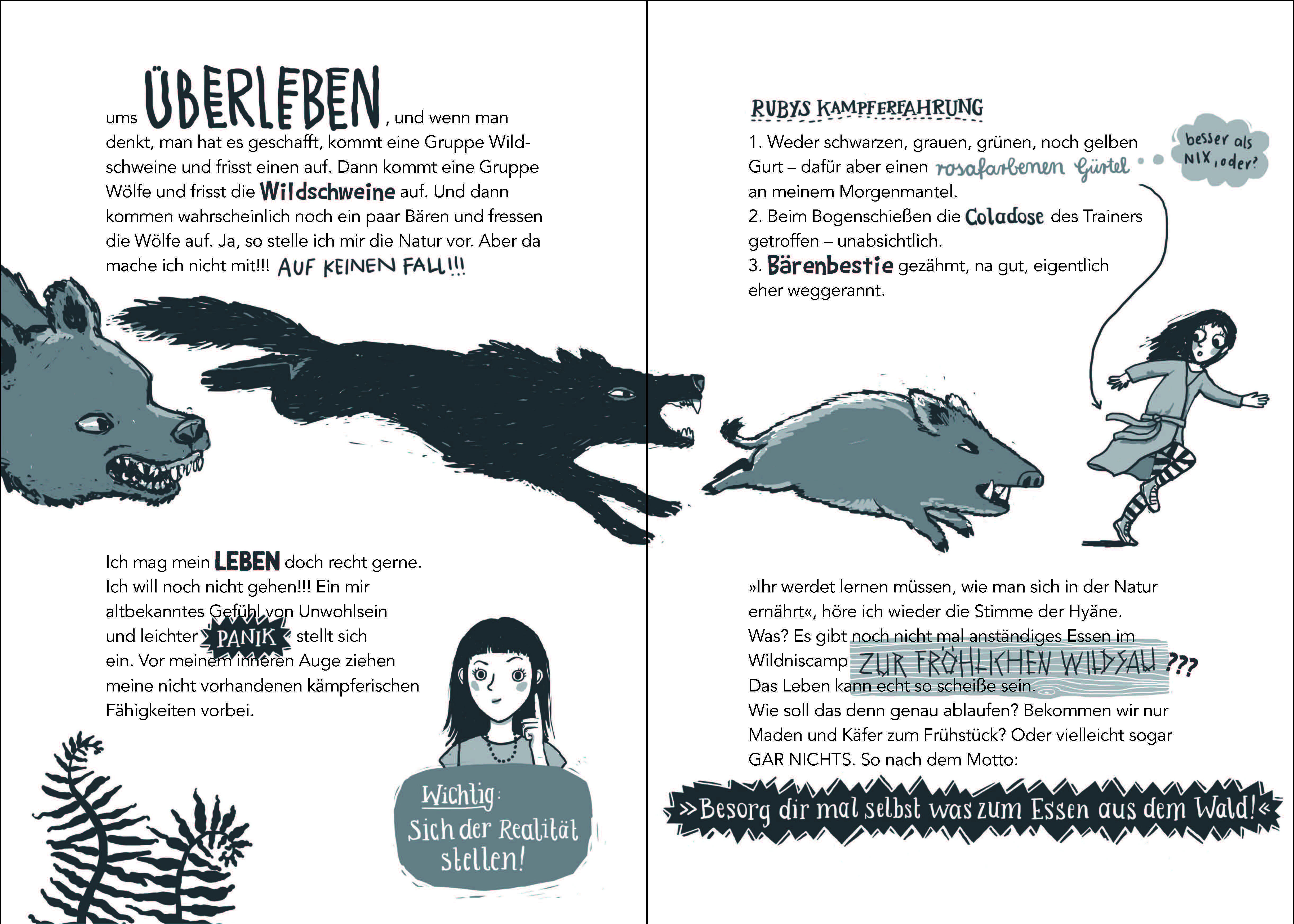 Ruby Black ist wieder da! Juhuuuu!!! Klassenfahrt! Ruby ist begeistert - bis sie erfährt, dass es nicht an den Strand, sondern ins Survival-Camp geht. Mit der fiesen Hyäne, dem verpeilten Schulpsychologen und dem durchgeknallten Hausmeister in die Wildnis? Un...