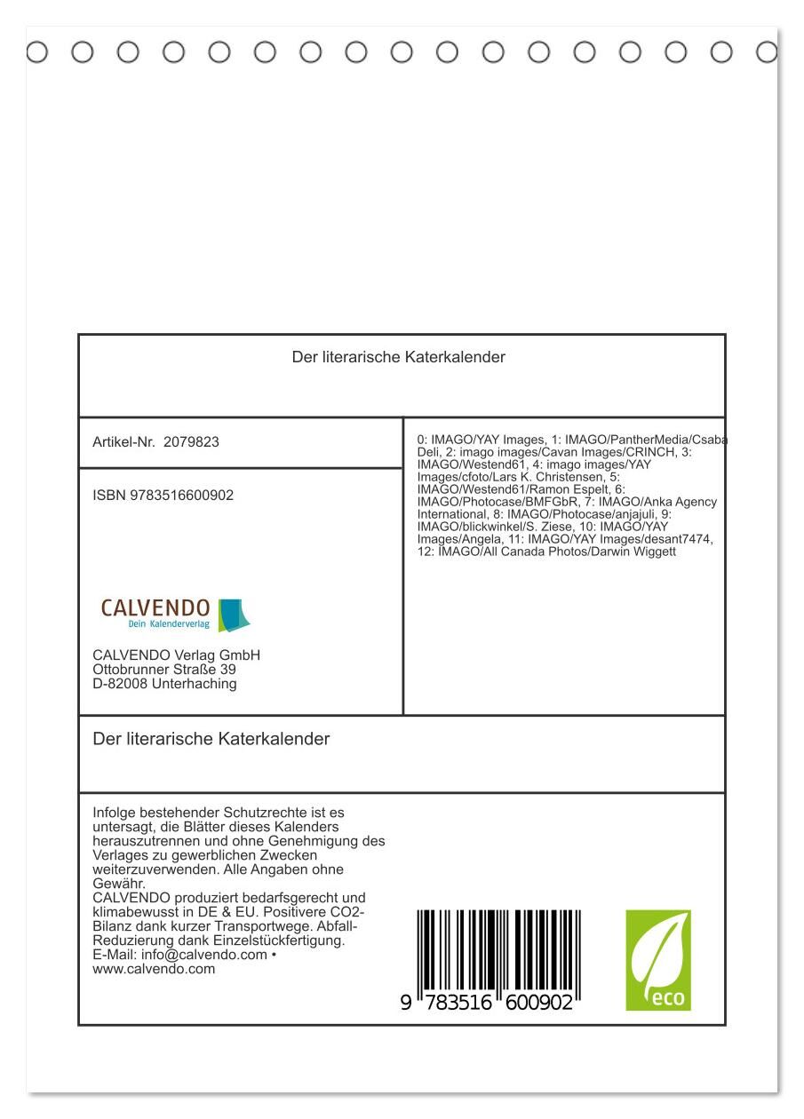 Der literarische Katerkalender (Tischkalender 2026 DIN A5 hoch), CALVENDO Monatskalender