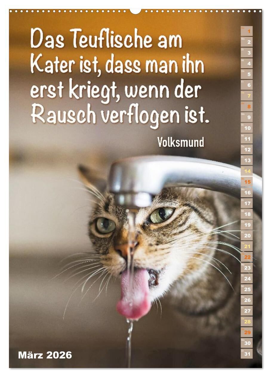 Der literarische Katerkalender (Wandkalender 2026 DIN A2 hoch), CALVENDO Monatskalender