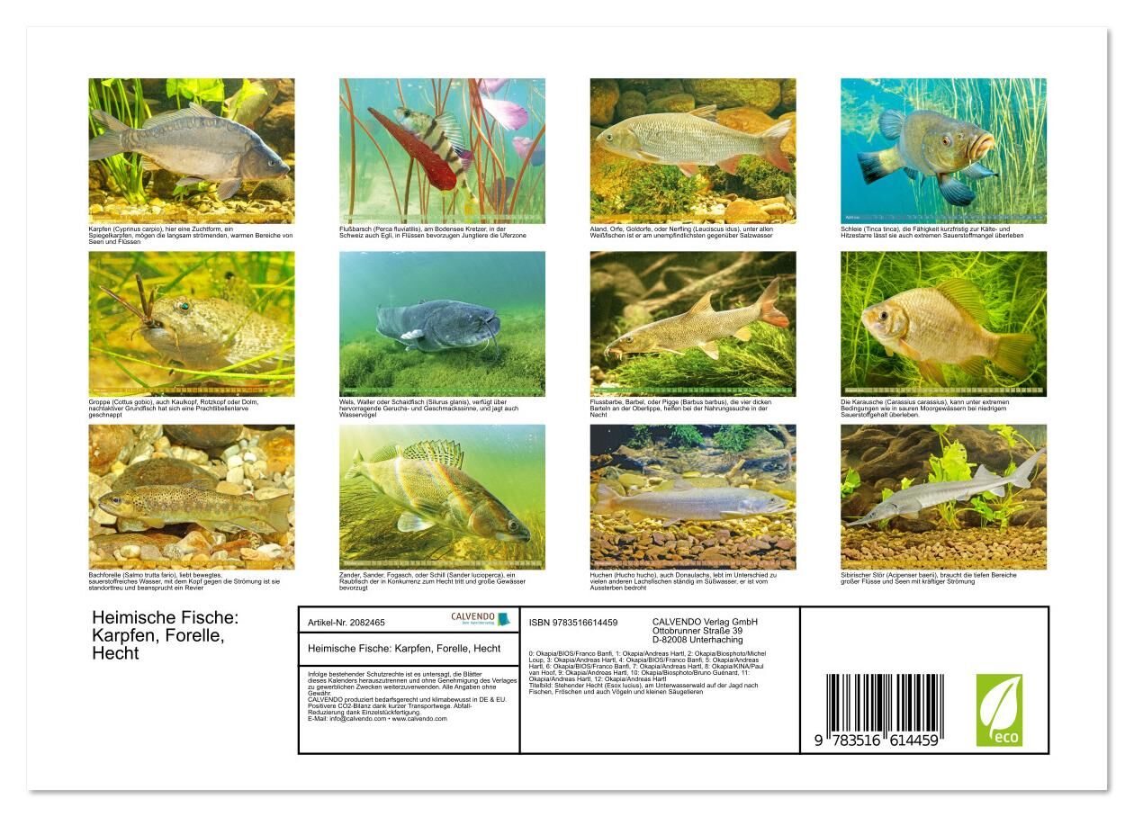 Unter Wasser tummeln sich die Fische, sie schwimmen durch Flüsse, Seen und Küstengewässer, auf der Suche nach Nahrung, nach Fischen und anderen Wasserlebewesen. Der Kalender zeigt einen kleinen Ausschnitt ihrer beeindruckenden Vielfalt in Europa, von Döbel und...