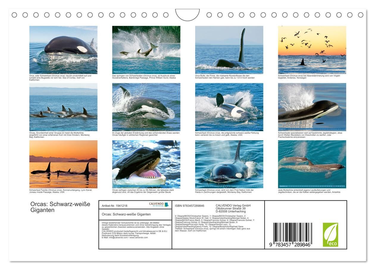 Orcas: Schwarz-weiße Giganten (Wandkalender 2026 DIN A4 quer), CALVENDO Monatskalender