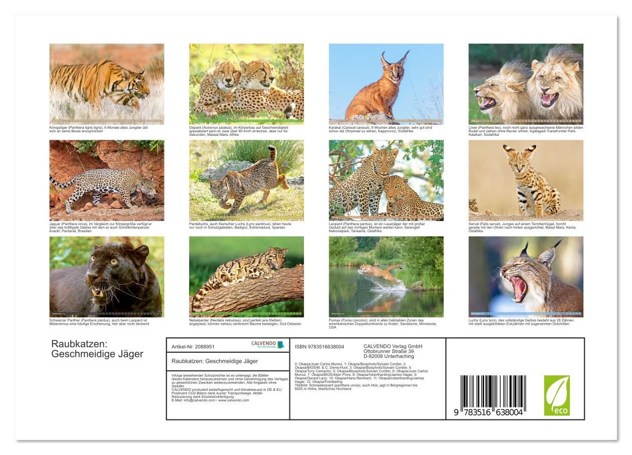 Raubkatzen: Geschmeidige Jäger (Wandkalender 2026 DIN A4 quer), CALVENDO Monatskalender