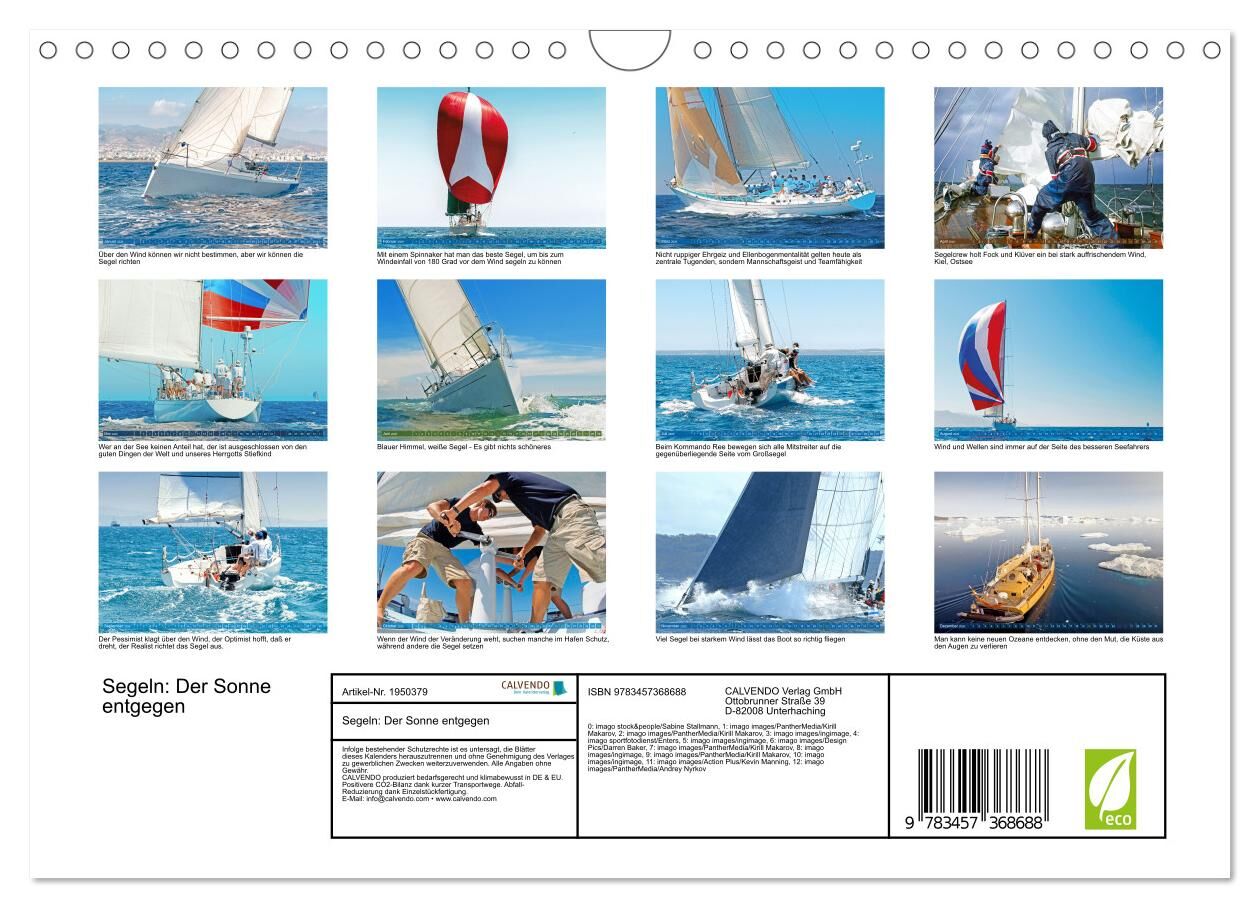 Die Gischt im Gesicht, den Wind in den Haaren, von oben die Sonne, das Ziel voraus: volle Kraft! Jeder Segelturn ist ein Abenteuer, anstrengend, aufregend, befriedigend. Gönnen Sie sich eine Atempause, aber vergessen Sie Ihr liebstes Hobby nicht: der Kalender ...