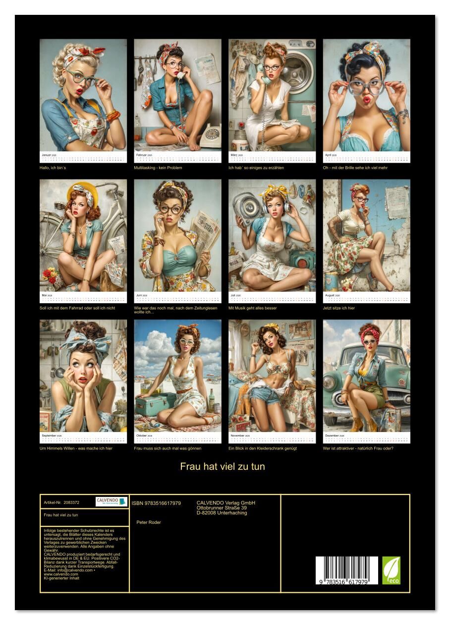 Willkommen im charmant chaotischem Alltag der Frau von Welt im Vintage-Stil der 1930er. Zwölf kreative KI-Illustrationen zeigen: Frau hat wirklich viel zu tun. Mal sitzt sie entspannt mit Kopfhörern vor der ratternden Waschmaschine und liest seelenruhig Zeitun...