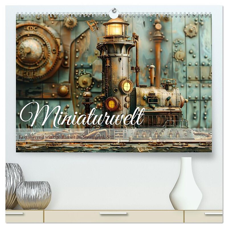 Miniaturwelt Faszinierend winzige Häuser im Steampunk-Stil (hochwertiger Premium Wandkalender 2026 DIN A2 quer), Kunstdruck in Hochglanz
