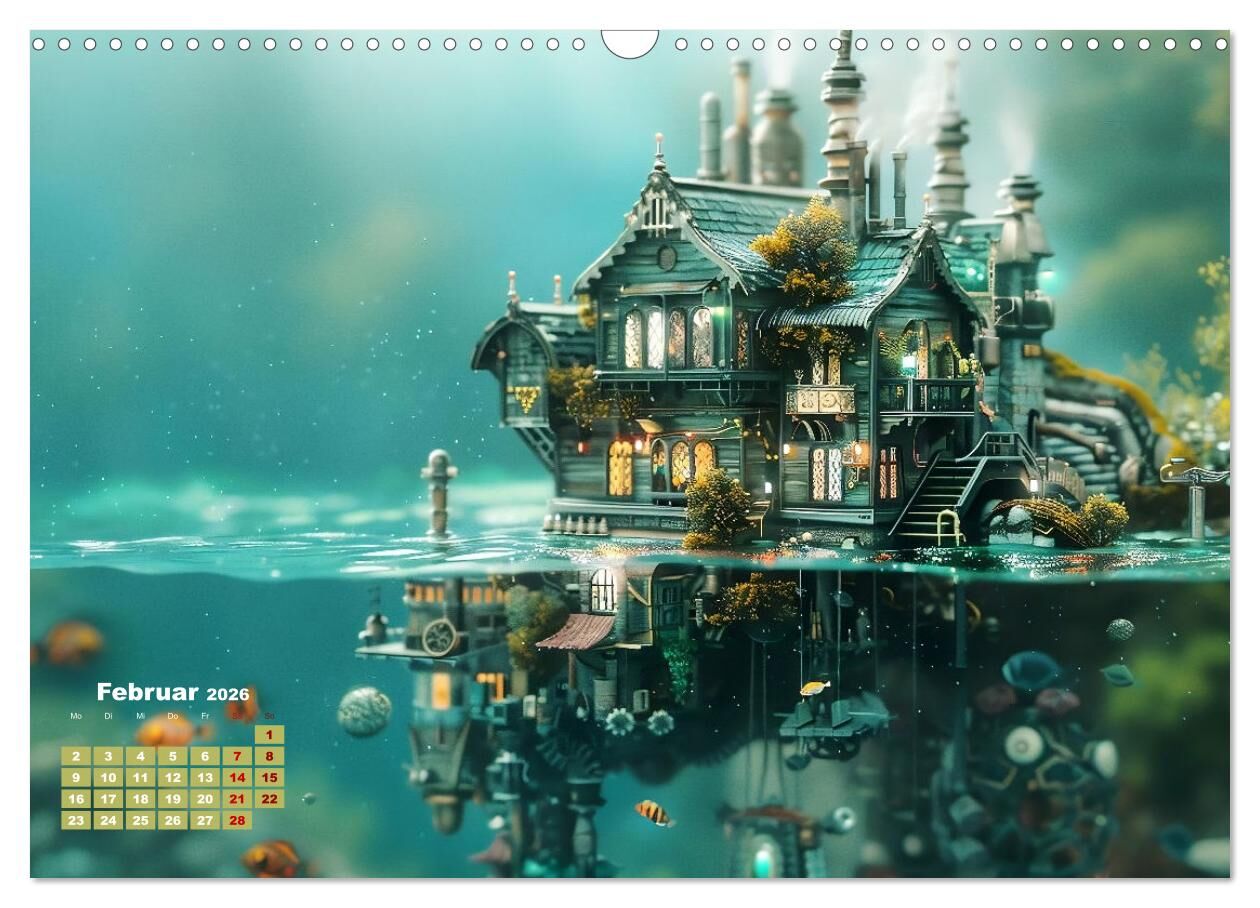 Miniaturwelt Faszinierend winzige Häuser im Steampunk-Stil (Wandkalender 2026 DIN A3 quer), CALVENDO Monatskalender