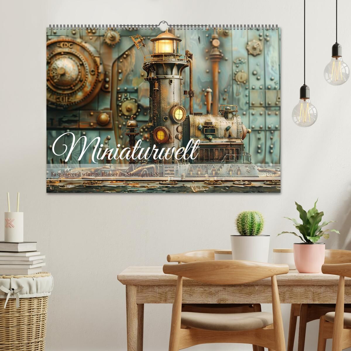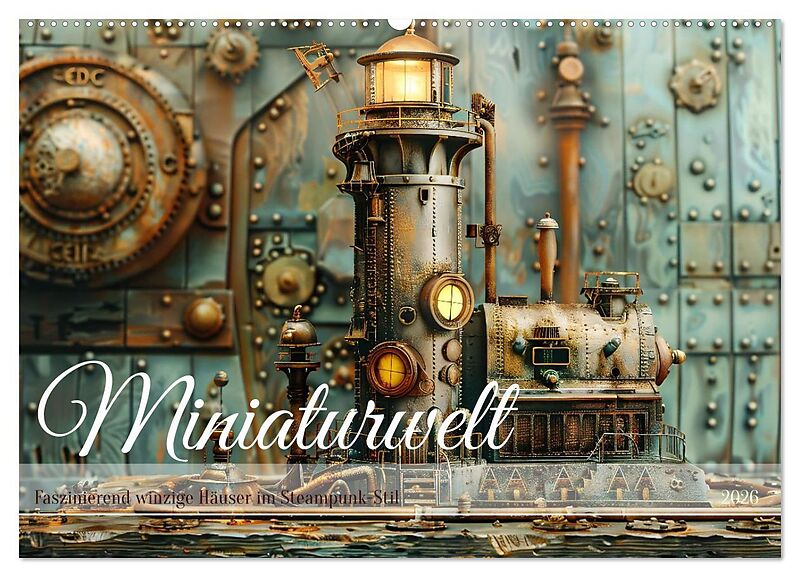 Miniaturwelt Faszinierend winzige Häuser im Steampunk-Stil (Wandkalender 2026 DIN A2 quer), CALVENDO Monatskalender