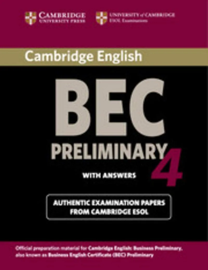Band 4 enthält vier komplette Tests des University of Cambridge Local Examination Syndicate für das ab 2002 gültige Format der BEC Preliminary-Prüfung.Die Bücher eignen sich für die Verwendung im Unterricht und zum Selbststudium gleichermaßen.