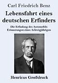 Klappentext Carl Friedrich Benz: Lebensfahrt eines deutschen Erfinders. Die Erfindung des Automobils. Erinnerungen eines Achtzigjährigen Lesefreundlicher Großdruck in 16-pt-Schrift Großformat, 210 x 297 mm Berliner Ausgabe, 2021 Durchgesehener Neusatz bearbeit...