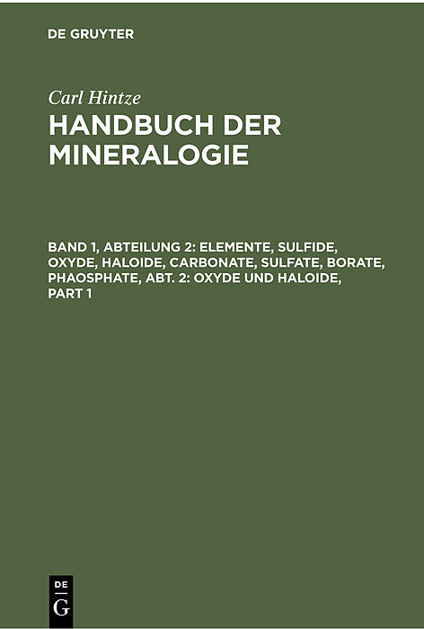 Keine ausführliche Beschreibung für "Elemente, Sulfide, Oxyde, Haloide, Carbonate, Sulfate, Borate, Phaosphate, Abt. 2: Oxyde und Haloide" verfügbar. Klappentext Keine ausführliche Beschreibung für "Elemente, Sulfide, Oxyde, Haloide, Carbonate, Sulfa...