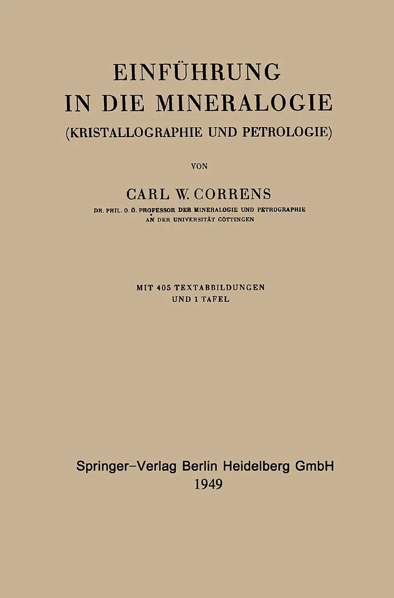 IN DIE MINERALOGIE (KRISTALLOGRAPHIE UNO PETROLOGIE) VON CARL W. CORRENS DR. PHIL. O. O. PROFESSOR DER MINERALOGIE UND PETROGRAPHIE AN DER UNIVERSITAT GOTTINGEN MIT 405 TEXTABBILDUNGEN UND 1 TAFEL Springer-Verlag Berlin Heidelberg GmbH 1949 ISBN 978-3-662-2733...