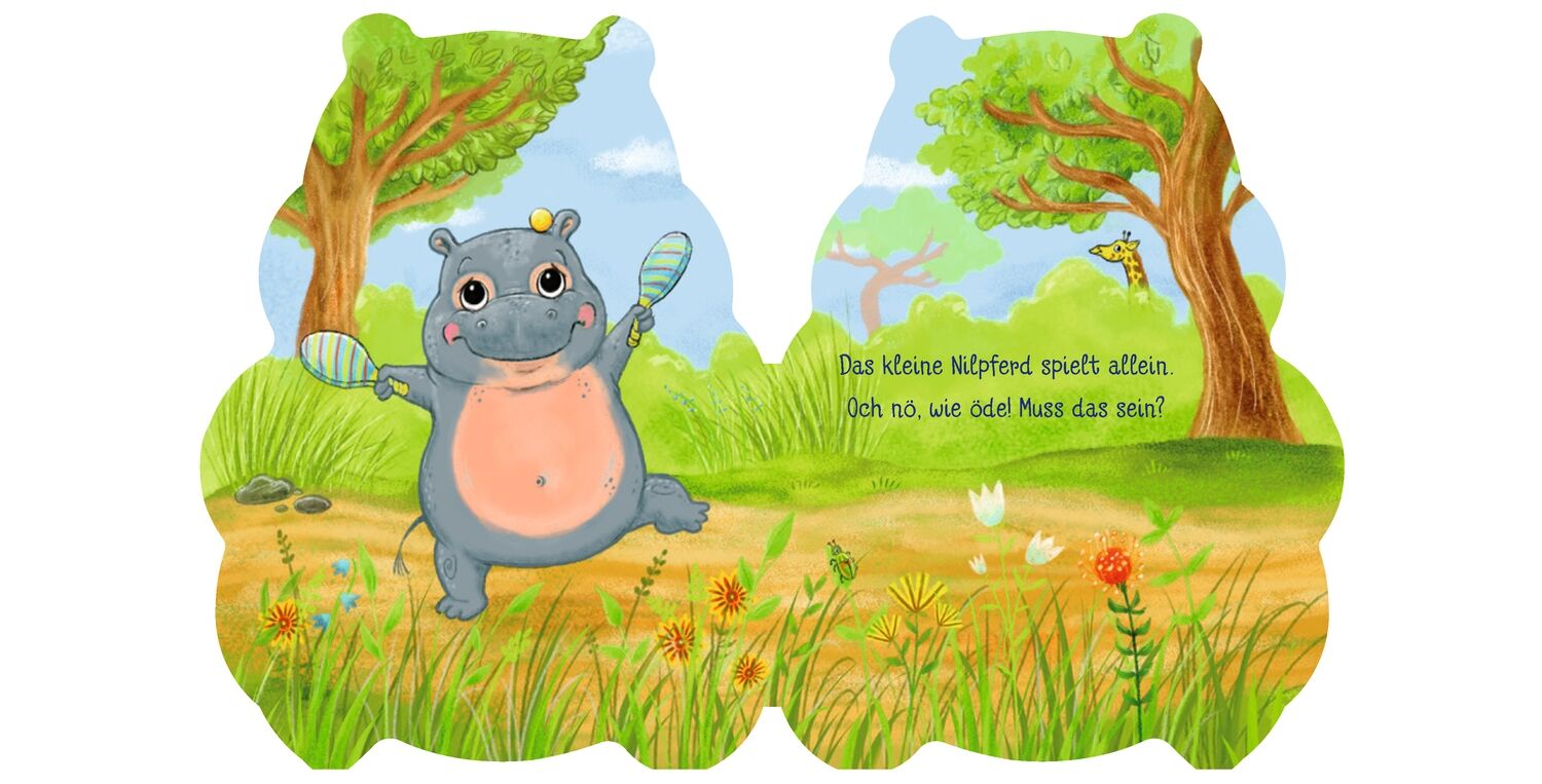 So einen Tierfreund wünscht sich jedes Kind! Laaangweilig! Das kleine Nilpferd braucht dringend jemanden zum Spielen. Die anderen Tiere machen die tollsten Vorschläge, doch Klettern, Verstecken und Wettlaufen sind nicht das Richtige. Na, was macht ein kleines...
