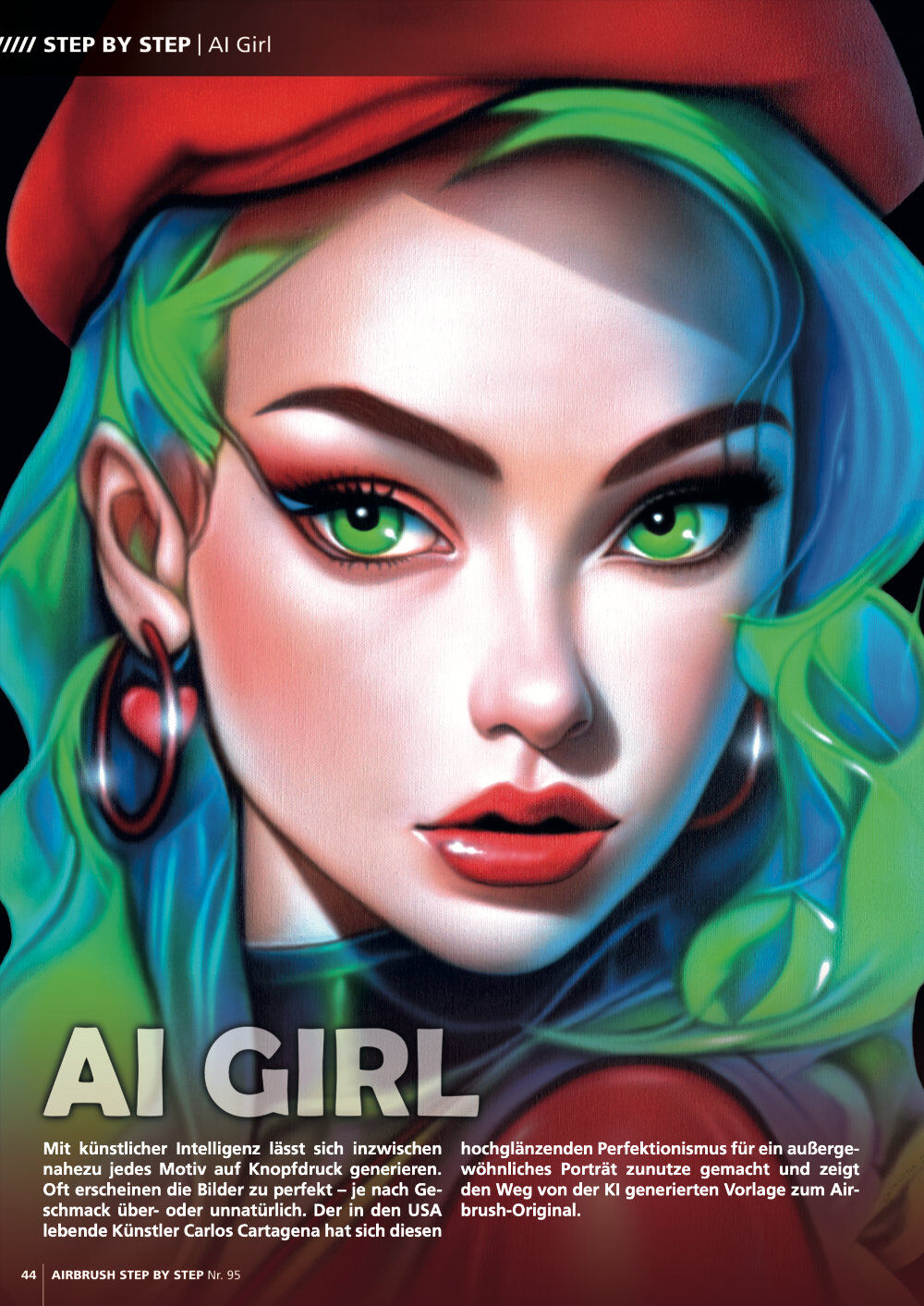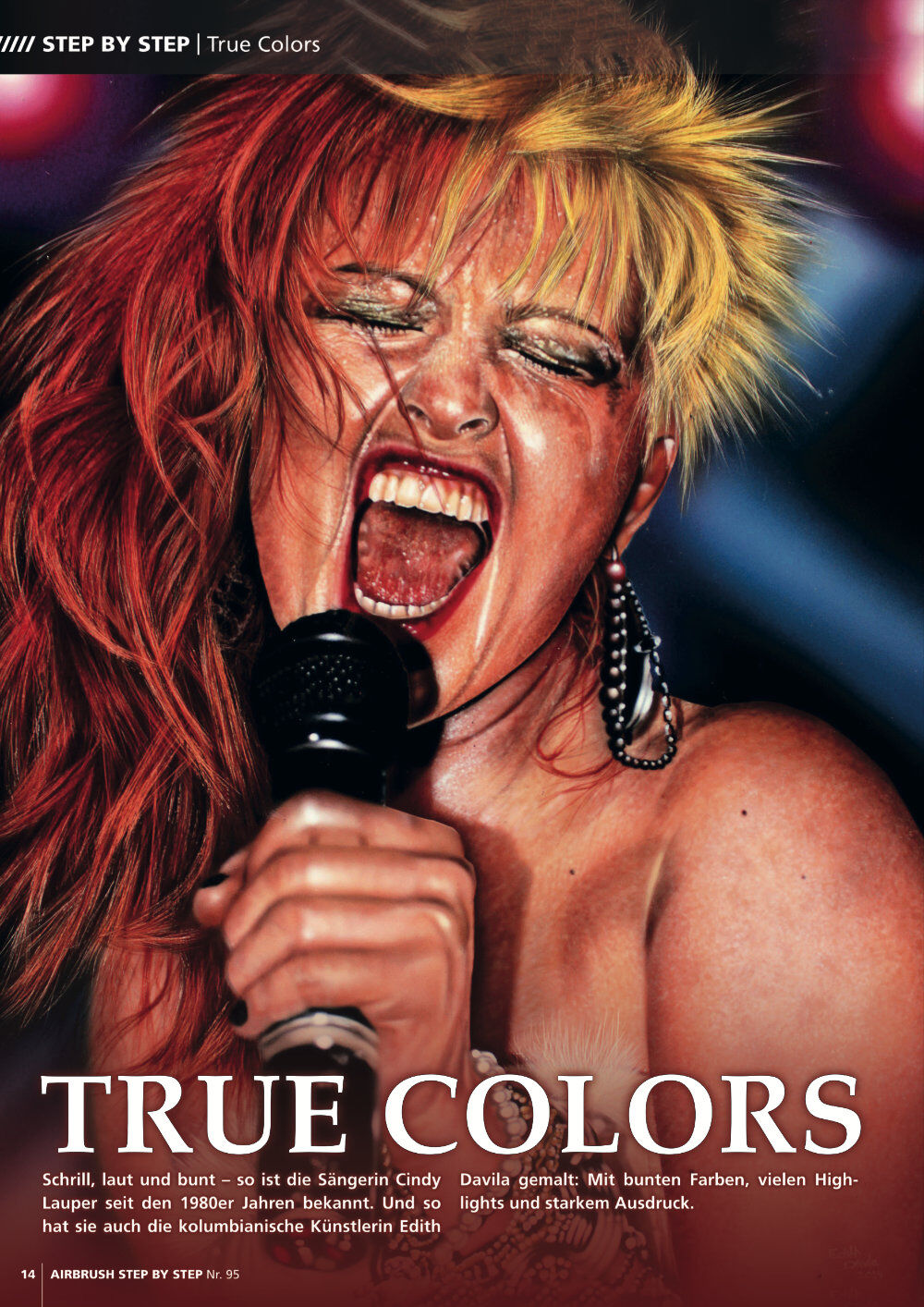 Airbrush Step by Step 95: Highlights Step by Steps: Porträt nach KI-Vorlage von Carlos Cartagena Cindy Lauper Porträt von Edith Davila Special Effects Porträt von Mariano Soto Lahr T-Shirt-Design von Olga Golubeva Tiger-Illustration von Daniela Frongia Intervi...