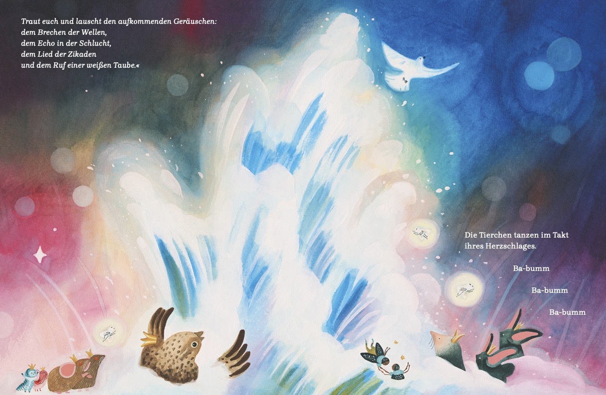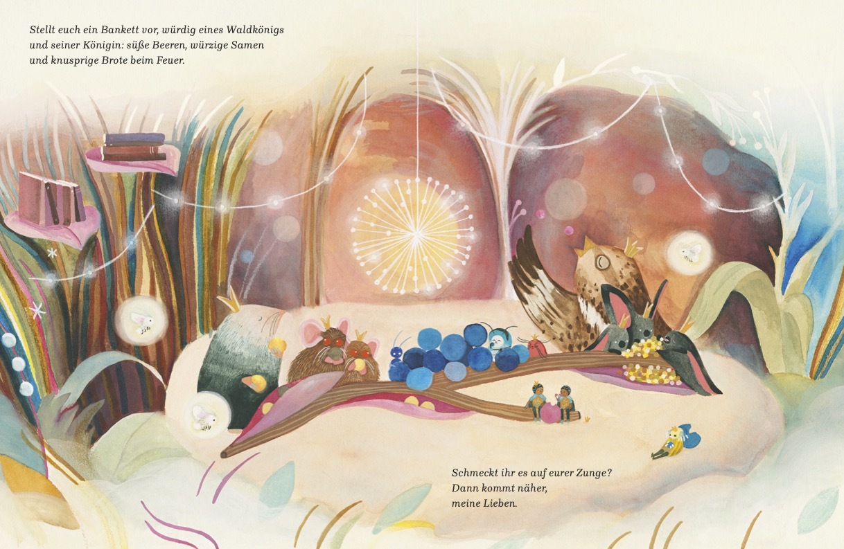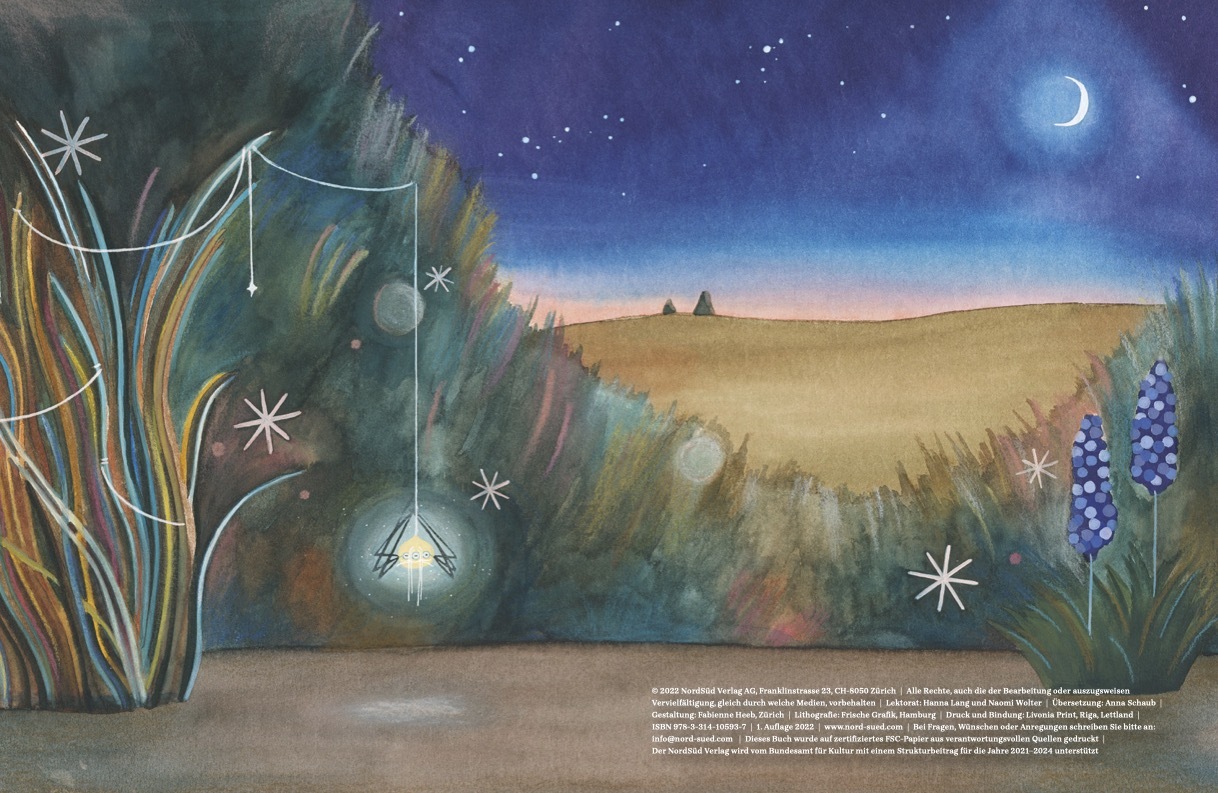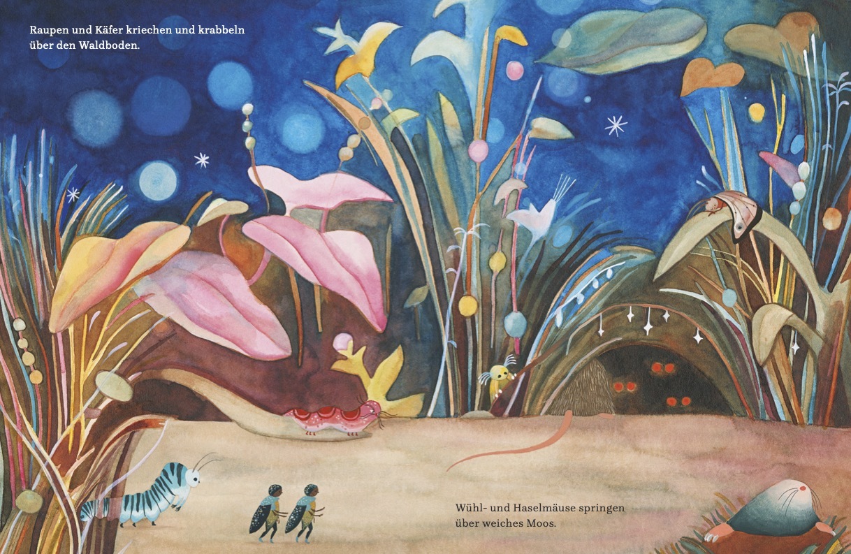 Wenn der Tag geht und die Nacht kommt, erwachen Käfer und Fledermäuse, Raupen und Nachtfalken. Gemeinsam machen sie sich auf den Weg und besuchen die Bibliothek der Dämmerung. Dort spinnt die Erzählerin der Nacht ihre Geschichten und weckt schönste Fantasien....