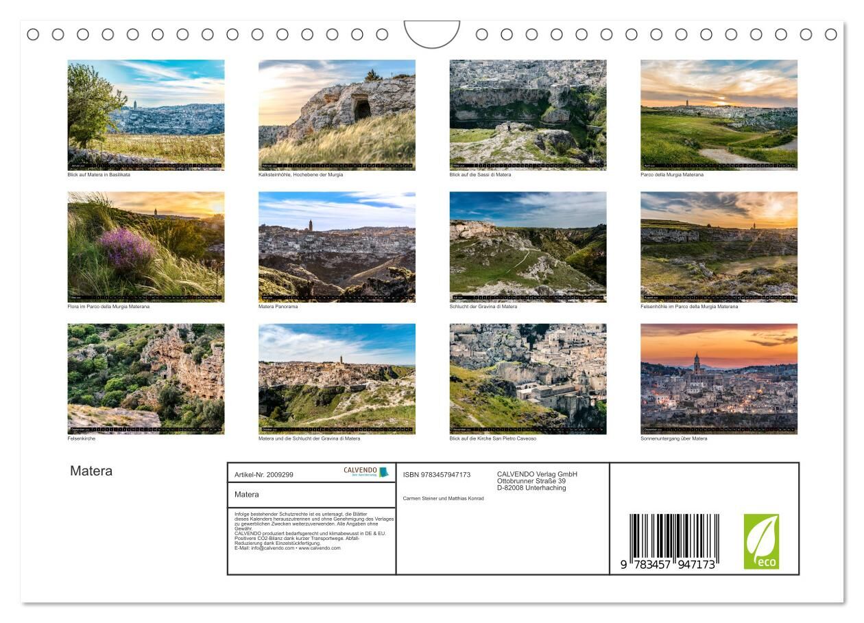 Dieser qualitativ hochwertige Kalender gehört zur exklusiven CALVENDO Gold-Edition. Auf der Suche nach historischer Architektur in Süditalien entdecken die beiden Fotografen Carmen Steiner und Matthias Konrad in der Region Basilikata die einzigartige Stadt Mat...