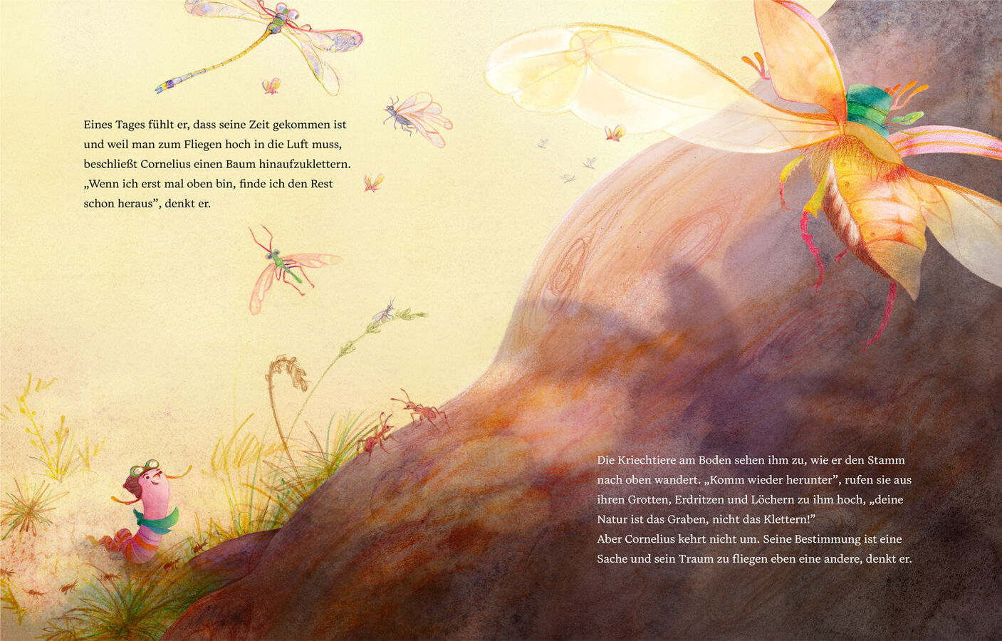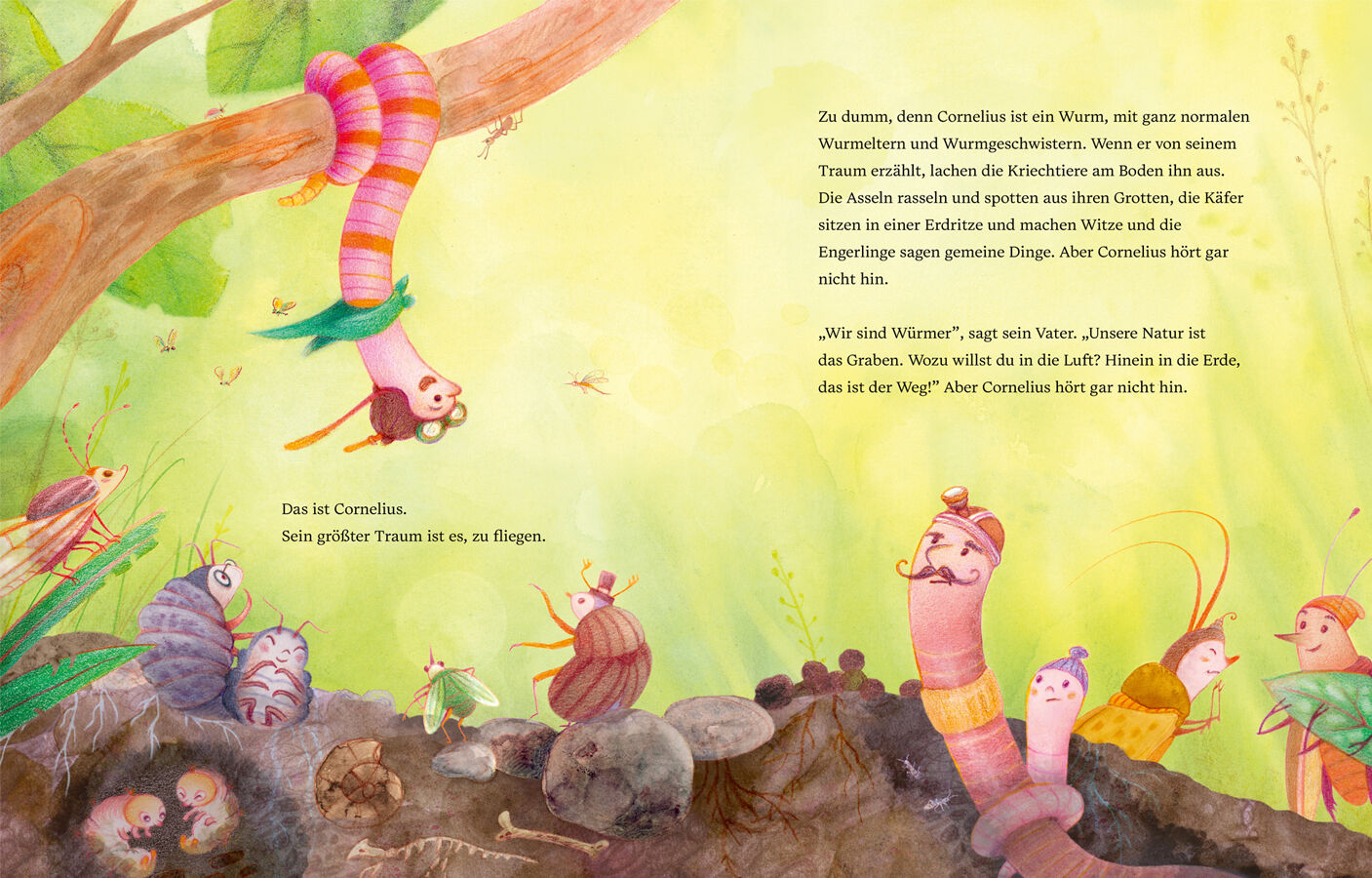 Cornelius, der kleine Wurm, träumt davon zu fliegen. Eine spritzige Mutmachgeschichte ab 4 Jahren über Durchhaltevermögen, Selbstvertrauen und das Verfolgen großer Träume Spritzig, witzig erzählt von Caro Docar und feinfühlig illustriert von Lissy Markmiller....
