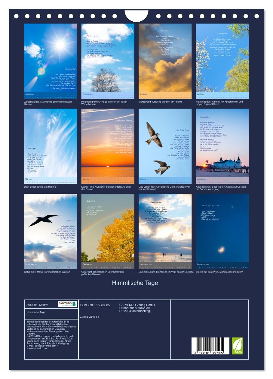 Himmlische Tage (Wandkalender 2026 DIN A4 hoch), CALVENDO Monatskalender