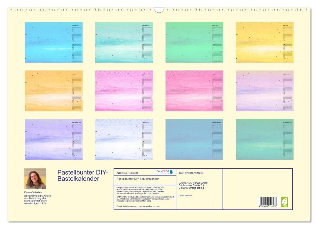 Mit diesem bunten Bastelkalender in Pastellfarben können Kinder und Erwachsene ihrer Kreativität freien Lauf lassen und ihren ganz persönlichen DIY-Kalender gestalten. Mit zwölf unterschiedlich vorgestalteten Kalenderblättern und einem Titelblatt bietet er zah...