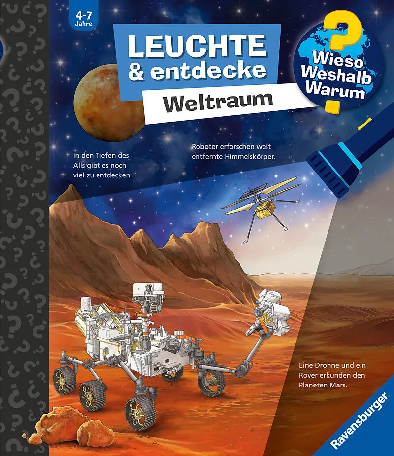 Weltraum Weißt du, wie viel Sternlein stehen? Mit Taschenlampe und Klappen das Weltall entdecken! Was funkelt am Nachthimmel? Welche Planeten kreisen um die Sonne? Wohin fliegen Raumsonden? In diesem Buch machen Kinder mit einer stabilen Taschenlampe aus Pappe...