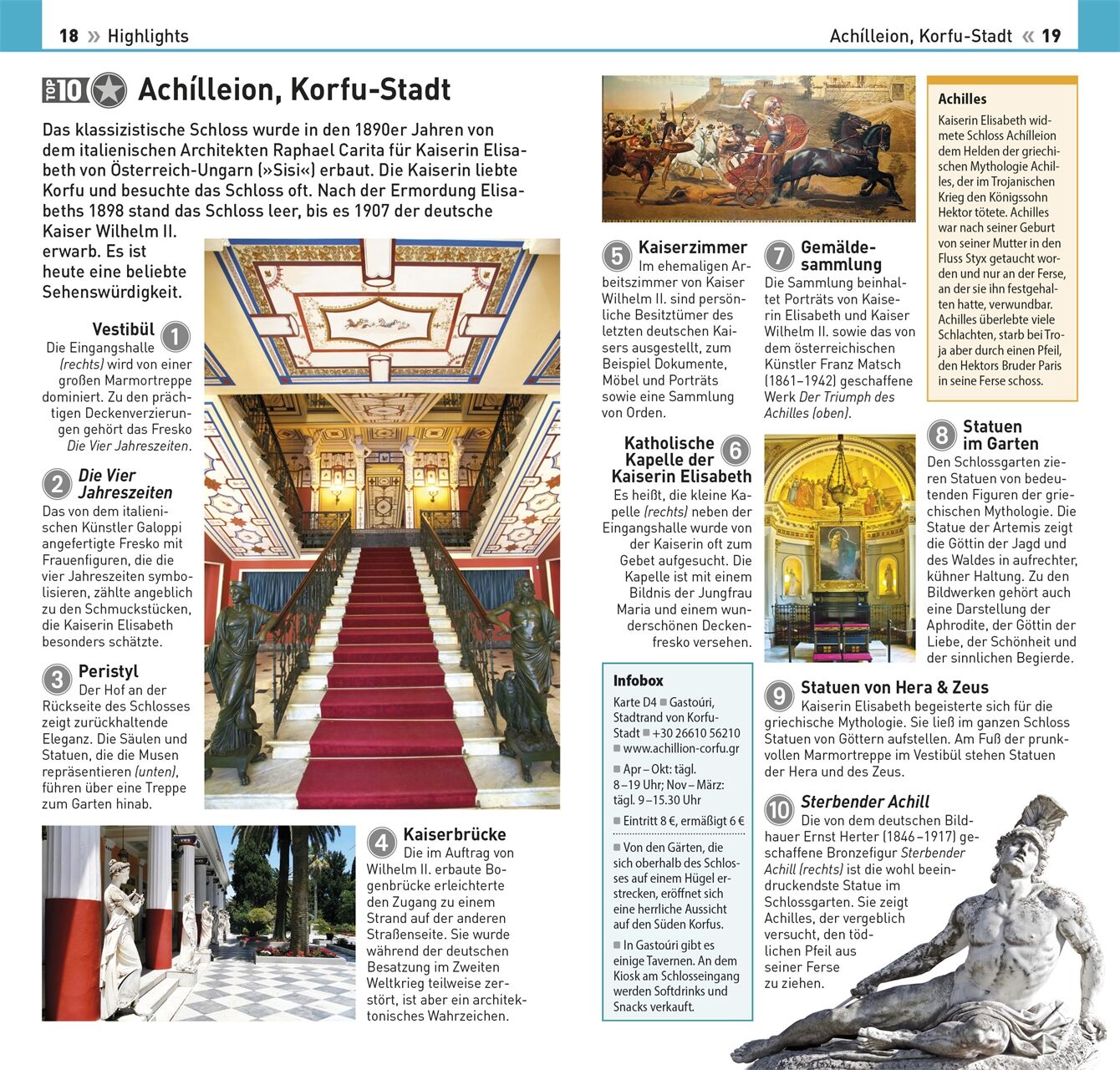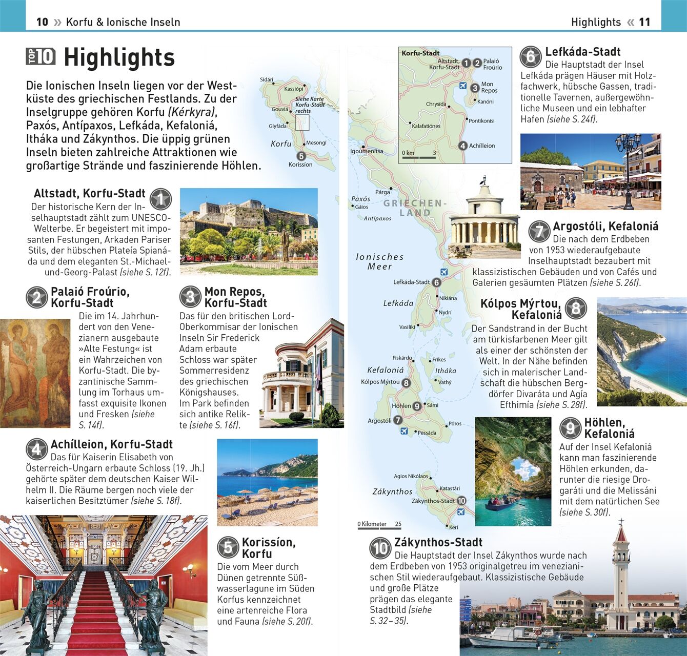 Klar strukturiert: Im bewährten TOP10-Prinzip werden die beliebtesten Sightseeing-Orte und Unternehmungen auf Korfu und den umliegenden Inseln kurz und knackig aufbereitet.
