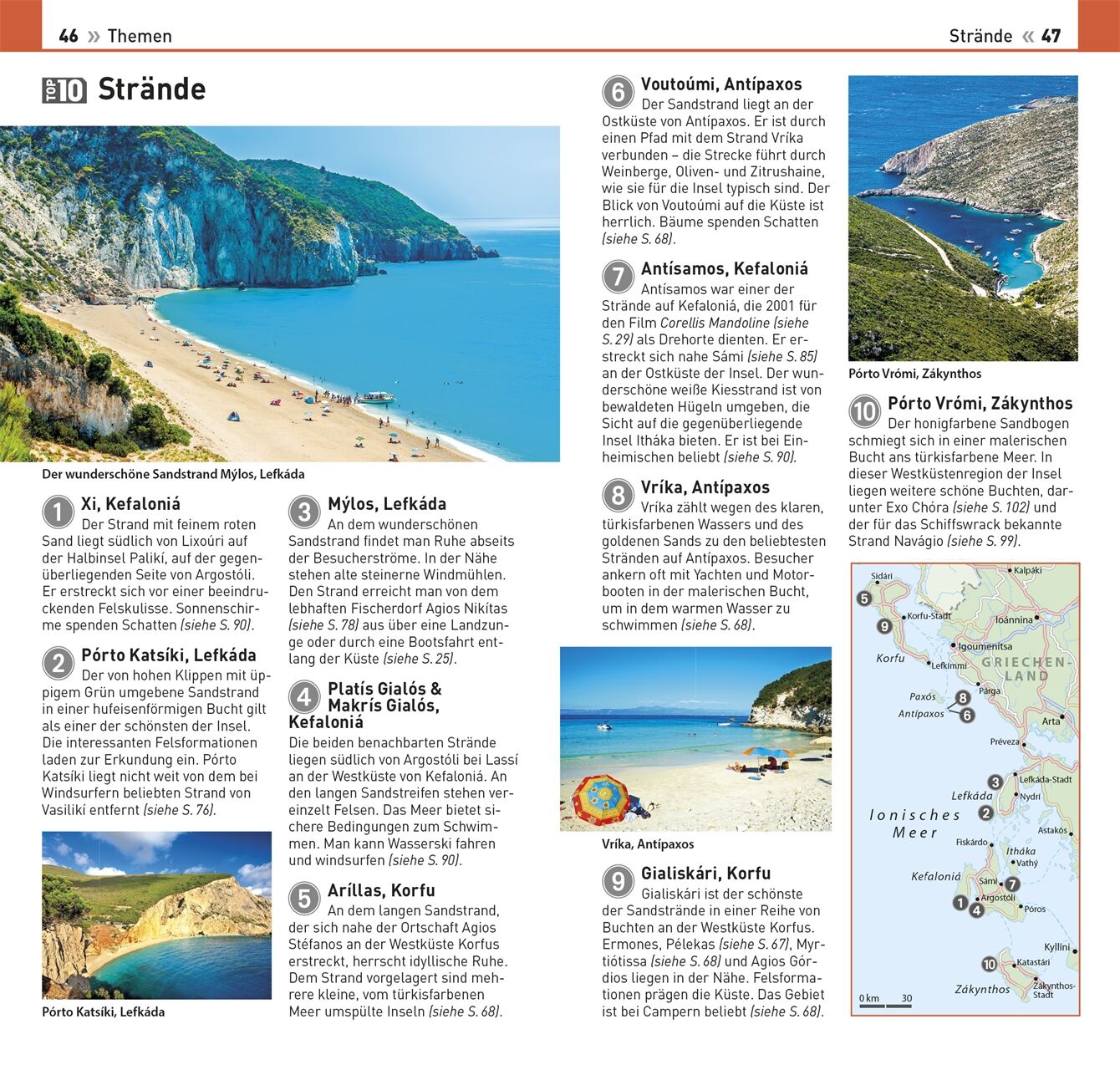 Beobachten Sie die artenreiche Flora und Fauna der Süßwasserlagune Korissíon im Süden von Korfu, wandern Sie zum Wasserfall der Dimosári-Schlucht auf Lefkáda oder staunen Sie über die atemberaubend schönen Küstenlandschaften von Zákynthos - im TOP10 Reiseführer werden die **Ionischen Hauptinseln - Korfu, Paxós, Antípaxos, Lefkáda…