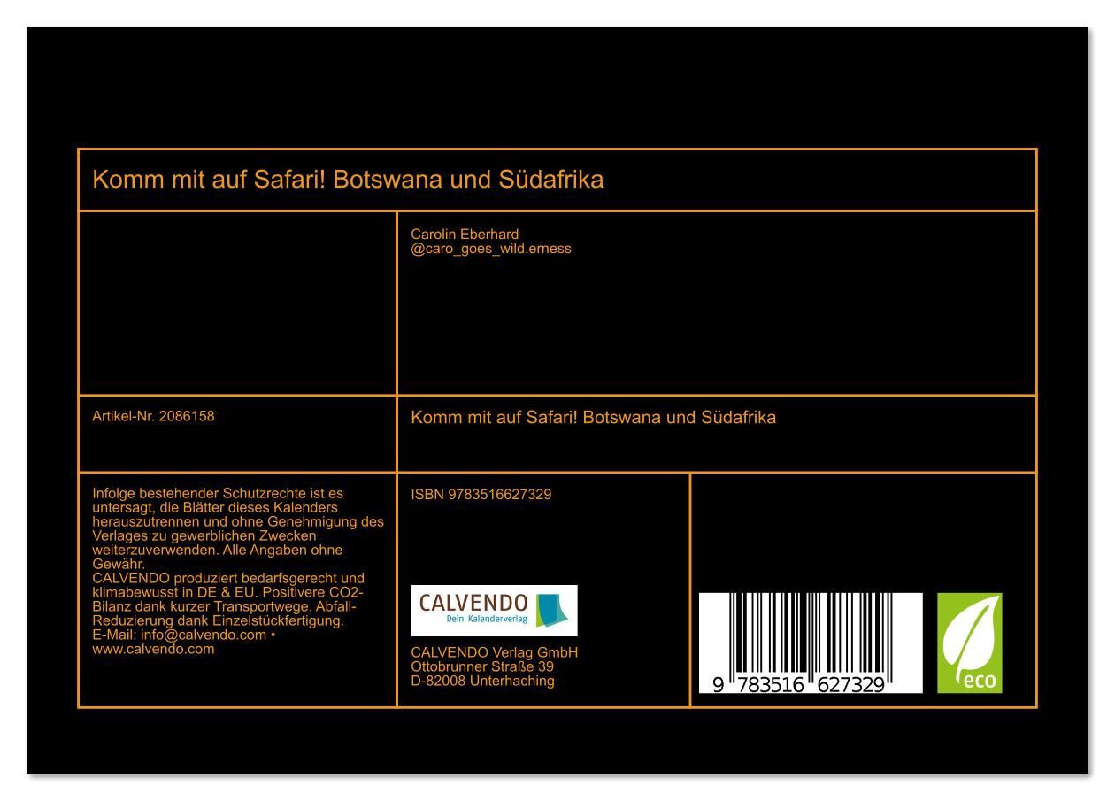 Erleben Sie die Magie Afrikas das ganze Jahr über mit unserem exklusiven Safarikalender. Faszinierende Tierporträts entführen Sie in die spannende Welt der afrikanischen Steppe und des Okavangodeltas und bringen die Wildnis direkt in Ihr Zuhause. Jeder Monat z...