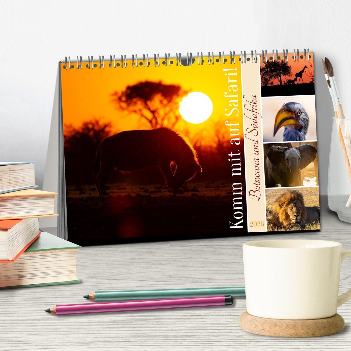 Komm mit auf Safari! Botswana und Südafrika (Tischkalender 2026 DIN A5 quer), CALVENDO Monatskalender