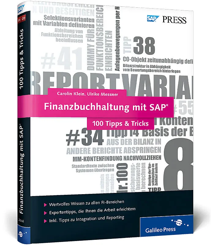 Über dieses BuchDie Finanzbuchhaltung ist Ihr Revier. Doch manchmal beschleicht Sie das Gefühl, dass Sie sich auf ausgetretenen Pfaden bewegen, und Sie fragen sich, ob es nicht auch schneller geht? Mit diesem Buch gelangen Sie einfacher ans Ziel! Unsere Autori...Über dieses BuchDie Finanzbuchhaltung ist Ihr Revier. Doch manchmal beschleicht Sie das Gefühl, dass Sie sich auf ausgetretenen Pfaden bewegen, und Sie fragen sich, ob es nicht auch schneller geht? Mit diesem Buch gelangen Sie einfacher ans Ziel! Unsere Autorinnen haben 100 Tipps und Tricks für Sie zusammengetragen, die Ihnen die Arbeit mit FI spürbar erleichtern. Ob Kreditorenbuchhaltung, Anlagenbuchhaltung, Rechnungsprüfung oder Abschlussarbeiten: Lernen Sie Short Cuts und Best Practices für alle Bereiche der SAP-Finanzbuchhaltung kennen und probieren Sie die leicht verständlichen Mini-Tutorials gleich im System aus.Mit Tipps zu:Sachkonten und Hauptbuchhaltung Bankbuchhaltung KreditorenbuchhaltungRechnungsprüfungDebitorenbuchhaltungFakturierungAnlagenbuchhaltungAbschluss und Reporting Integration