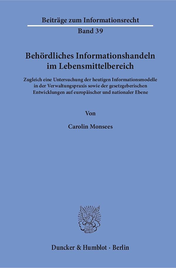 Die Frage nach der Rechtmäßigkeit behördlicher Publikationen auf Onlineportalen ist aktueller denn je. Am Beispiel des Lebensmittelbereichs zeigt die Autorin die rechtlichen Voraussetzungen für heutige Verbraucherinformation auf. Hierbei liegt der Fokus auf de...