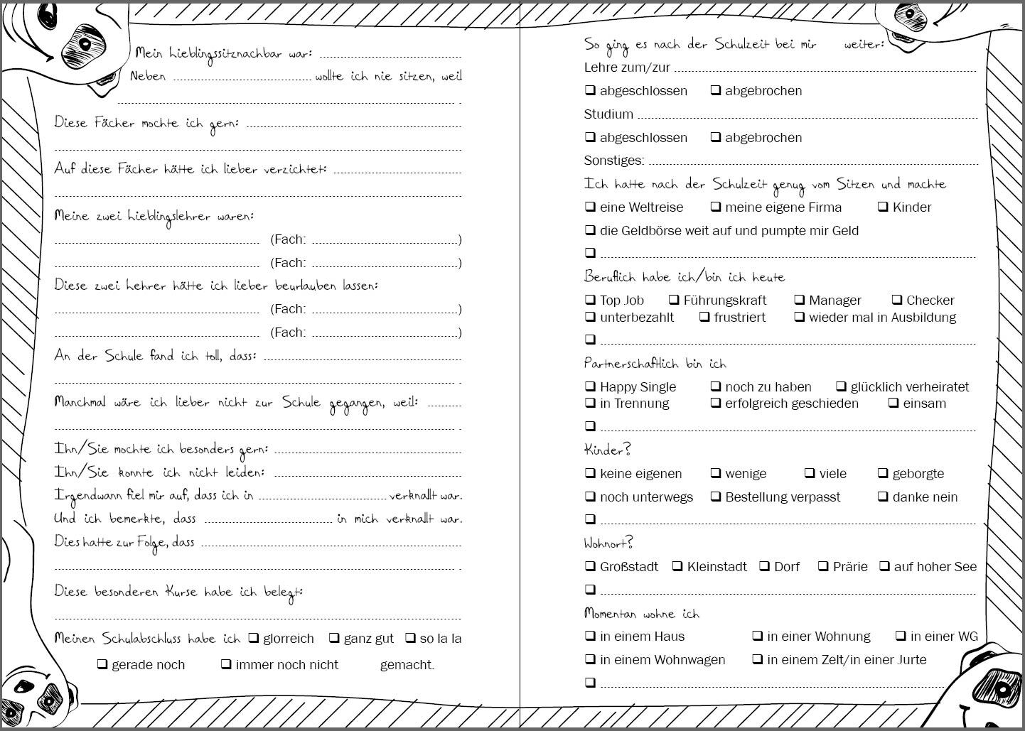 Endlich Klassentreffen! Hier kommt das perfekte Buch, um in der Kürze der Zeit alles aus den ehemaligen Schulkollegen rauszumelken. Denn lang, lang ist's her, dass sich eure Wege trennten. Die Schule ist passé. Und nun - 5, 10, 20 oder noch mehr Jahre später -...