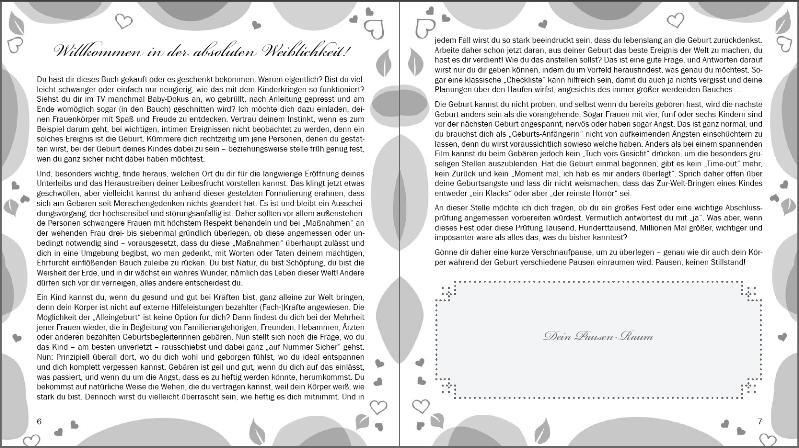 Willkommen in der absoluten Weiblichkeit! Du hast dir dieses Buch gekauft oder es geschenkt bekommen. Warum eigentlich? Bist du vielleicht schwanger oder einfach nur neugierig, wie das mit dem Kinderkriegen so funktioniert? Siehst du dir im TV manchmal Baby-Dokus an, wo gebrüllt, nach Anleitung gepresst und am Ende womöglich sogar (in den Bauch) geschnitten wird? Ich möchte dich dazu einladen, deinen Frauenkörper mit Spaß und Freude zu entdecken. Vertrau deinem Instinkt, wenn es zum Beispiel darum geht, bei wichtigen, intimen Ereignissen nicht beobachtet zu werden, denn ein solches Ereignis ist die Geburt. Kümmere dich rechtzeitig um jene Personen, denen du gestatten wirst, bei der Geburt deines Kindes dabei zu sein beziehungsweise stelle früh genug fest, wen du ganz sicher nicht dabei haben möchtest. Und, besonders wichtig, finde heraus, welchen Ort du dir für die langwierige Eröffnung deines Unterleibs und das Heraustreiben deiner Leibesfrucht vorstellen kannst. Das klingt jetzt etwas geschwollen, aber vielleicht kannst du anhand dieser gestelzten Formulierung erahnen, dass sich am Gebären seit Menschengedenken nichts geändert hat. Es ist und bleibt ein Ausscheidungsvorgang, der hochsensibel und störungsanfällig ist. Daher sollten vor allem außenstehende Personen schwangere Frauen mit höchstem Respekt behandeln und bei Maßnahmen an der wehenden Frau …