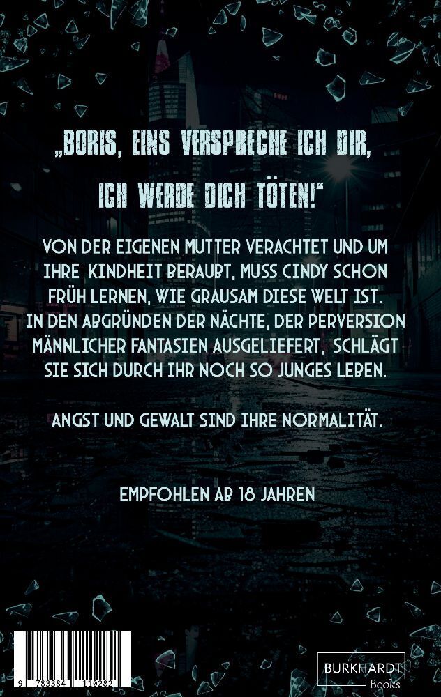 "Boris, eins verspreche ich dir, ich werde dich töten!" Von der eigenen Mutter verachtet und um ihre Kindheit beraubt, muss Cindy schon früh lernen, wie grausam diese Welt ist. In den Abgründen der Nächte, der Perversion männlicher Fantasien ausgeliefert, schl...